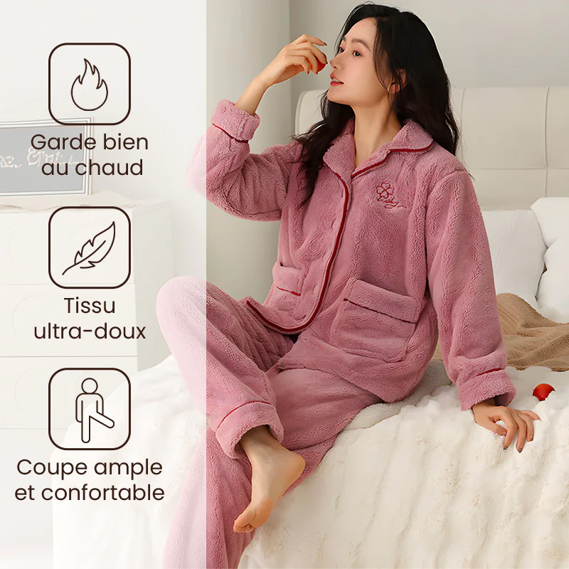 Un pyjama en moumoute pour femme, aussi chaud que réconfortant