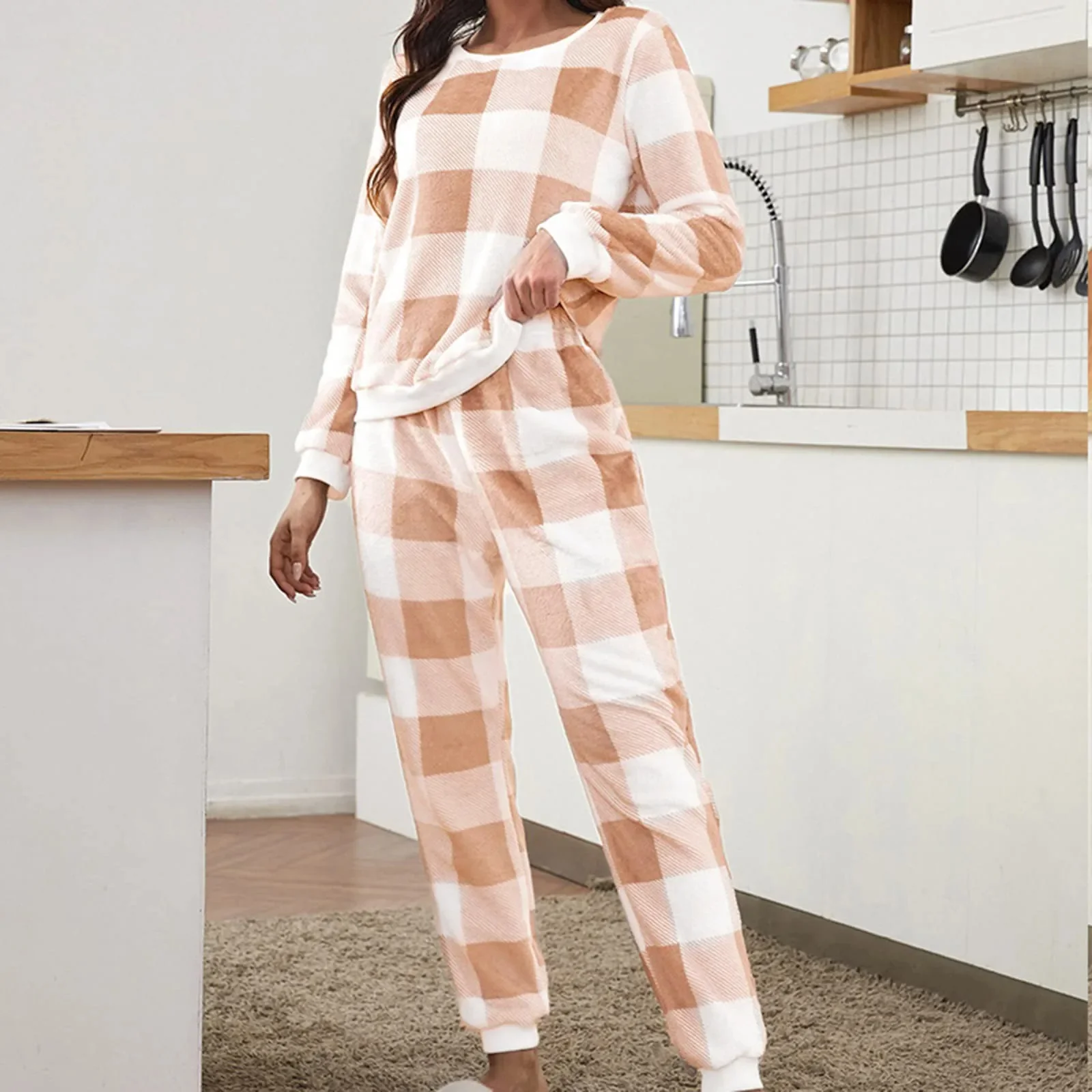 Notre pyjama polaire deux pièces avec motifs à carreaux est l’incarnation parfaite du confort stylé pour les nuits fraîches. Fabriqué en polyester doux, ce pyjama arbore un design classique à carreaux en marron sur fond blanc, combinant chaleur et élégance. C’est le choix idéal.