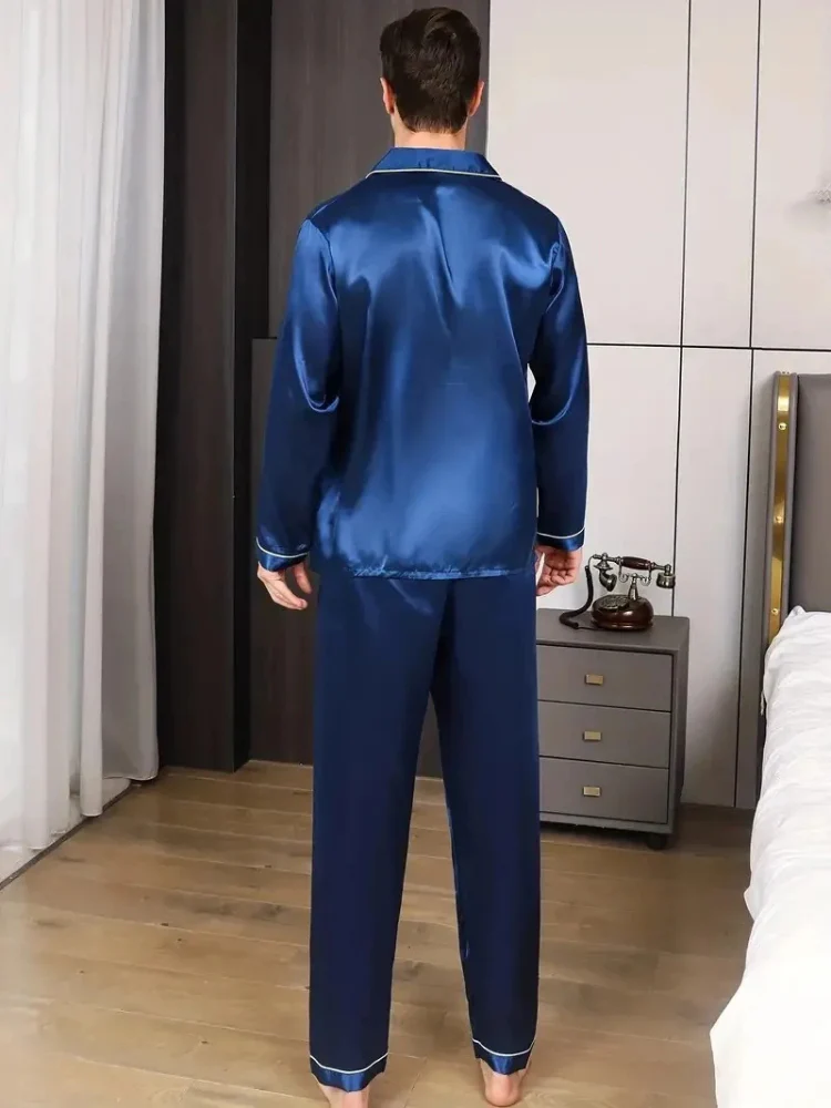 Caractéristiques du Pyjama en Satin Bleu pour Homme