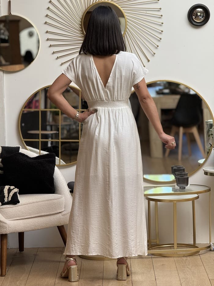 Robe longue à mc – resseré à la taille Taille : Mathilde mesure 1m65. Elle porte la S unique pour ce modèle. Taille : S (36) / M (38) / L (40) Composition & entretien : 80% LIN 20% VISCOSE Lavage à la main conseillé Besoin d’un conseil ? Consultez notre foire aux questions ou […]