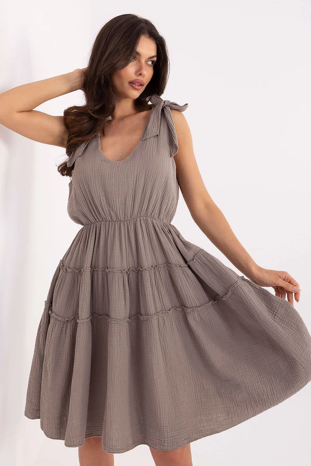 Robe courte Sans manches Bretelles avec noeud décoratif Evasée 100% Coton Fabrication européenne/haute qualité