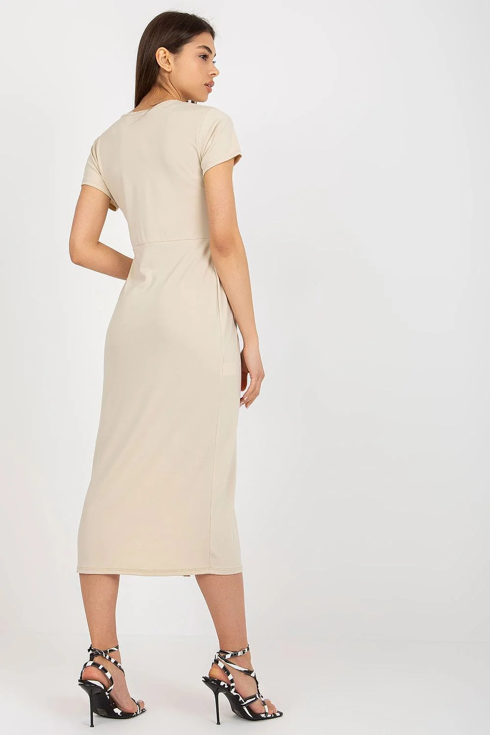 Robe Mi-longue Coupe droite Manches courtes Col en V Pli décoratif sur le devant Fabriquée en Europe
