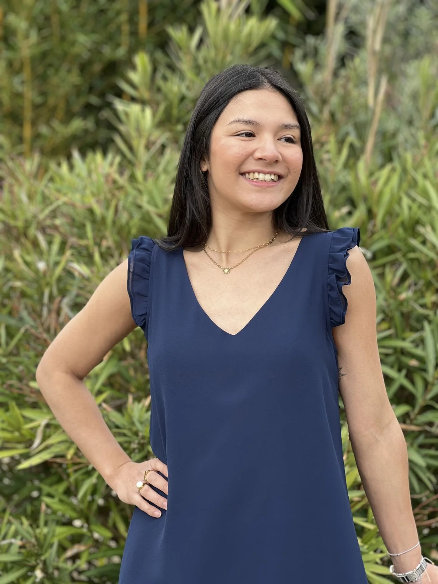 - ROBE COURTE MC A FROUFROU COL V + NŒUD DANS LE DOS