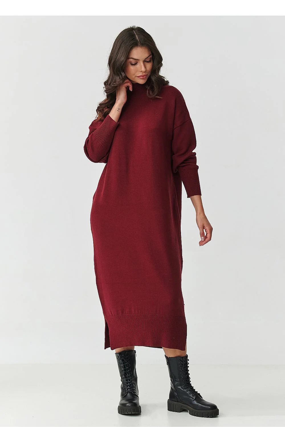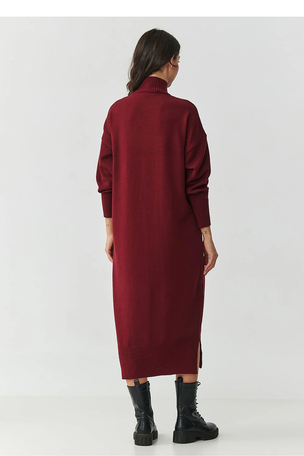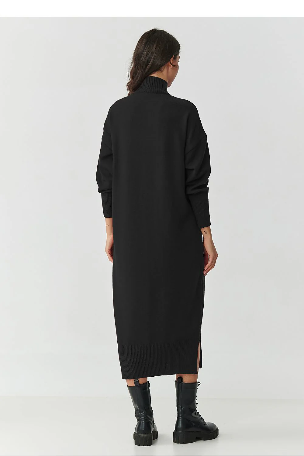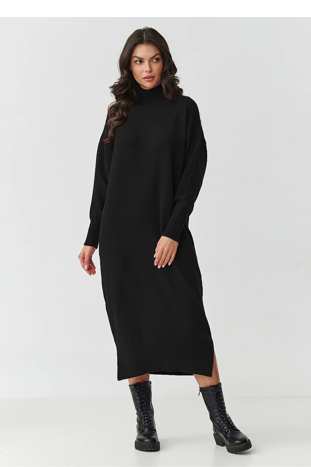 Robe pull longue en maille Manches longues Col roulé Fentes sur les deux côtés Coupé large