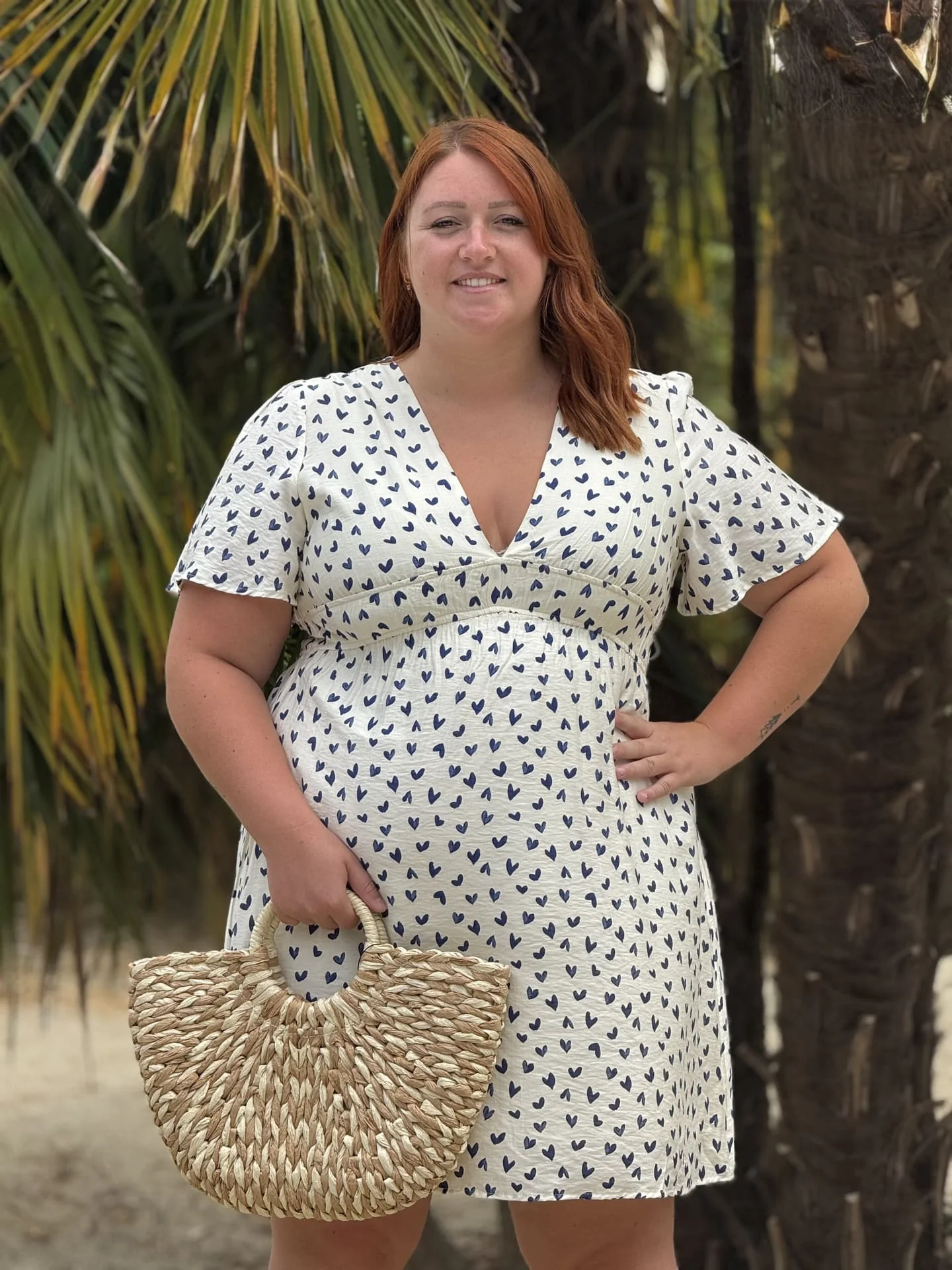 - Robe courte à mc col v resserré à la taille – imprimé petits cœur
