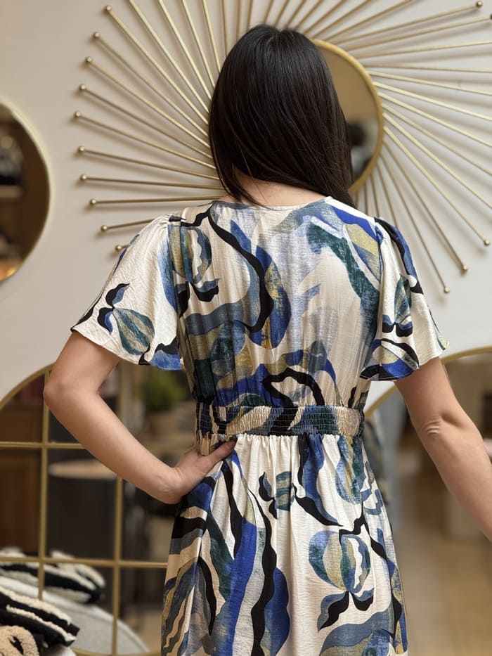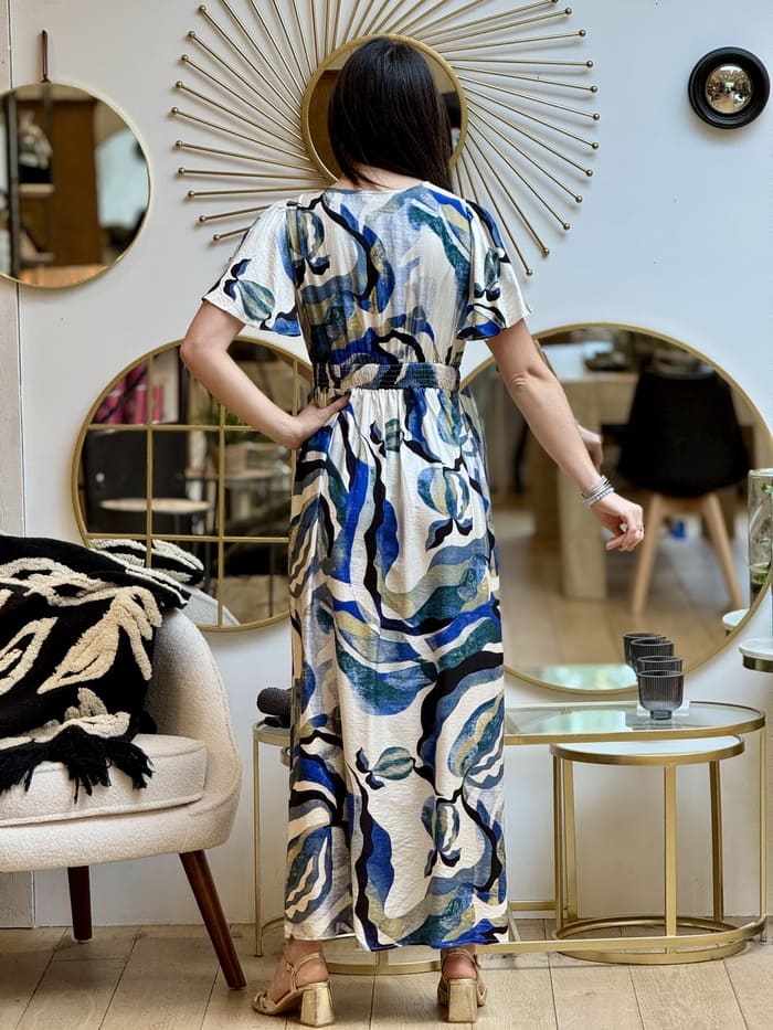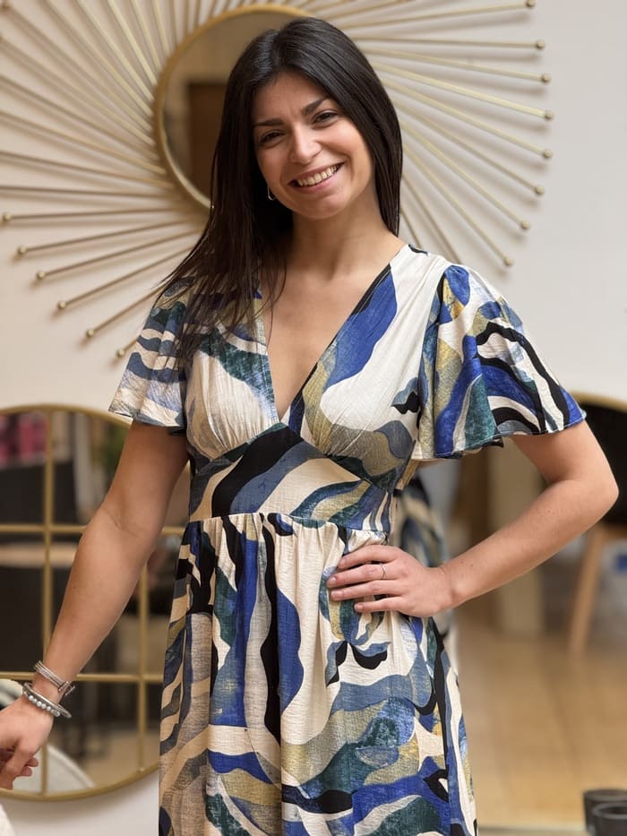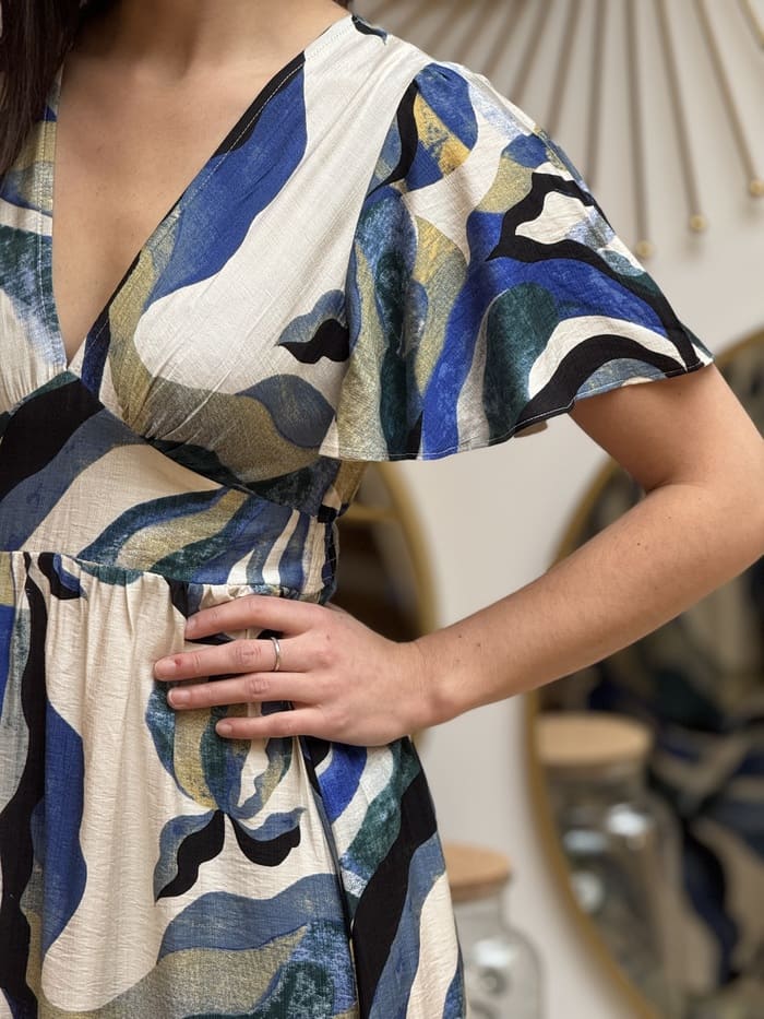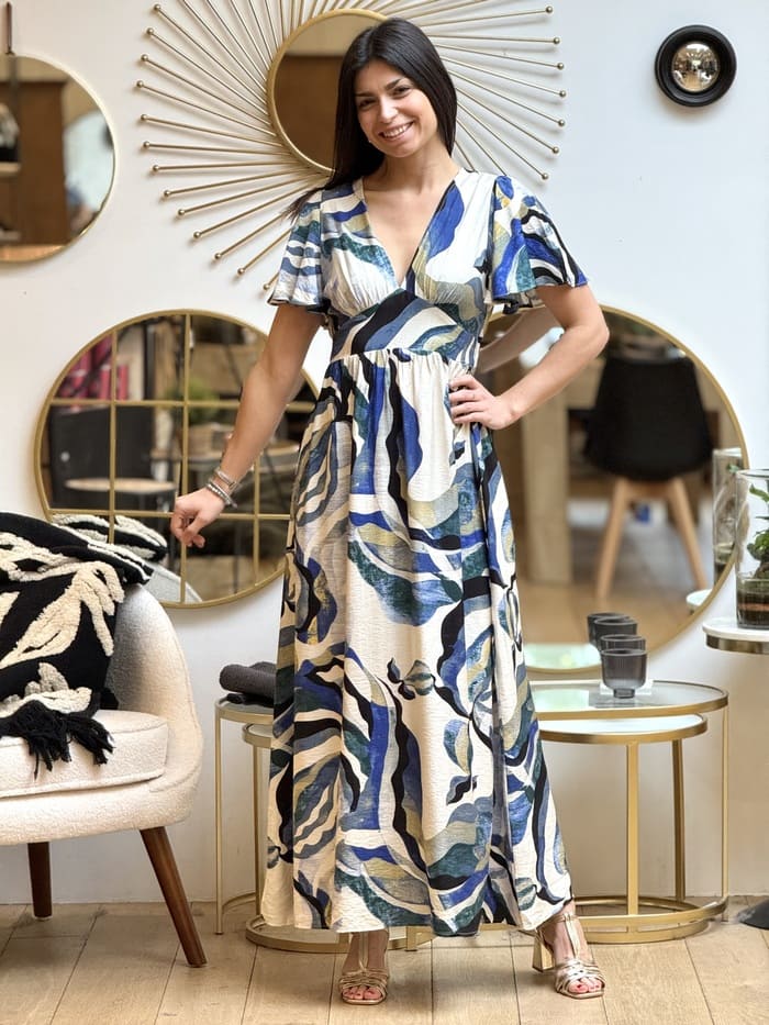 - ROBE LONGUE motif abstrait bleu / vert / noir