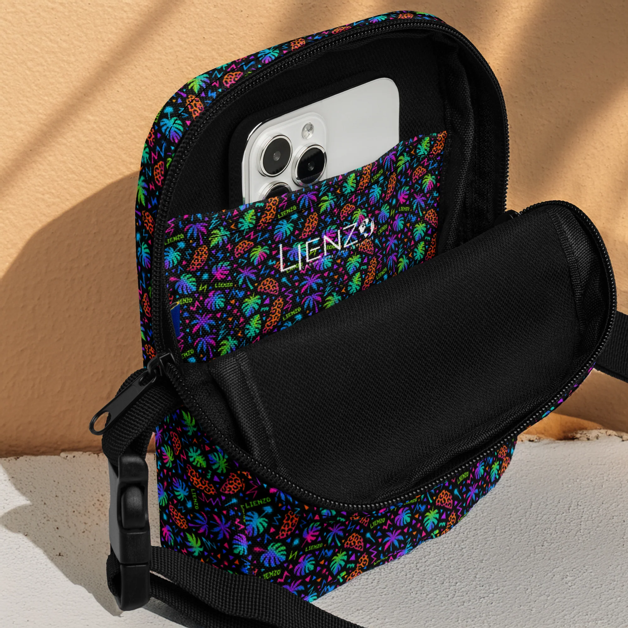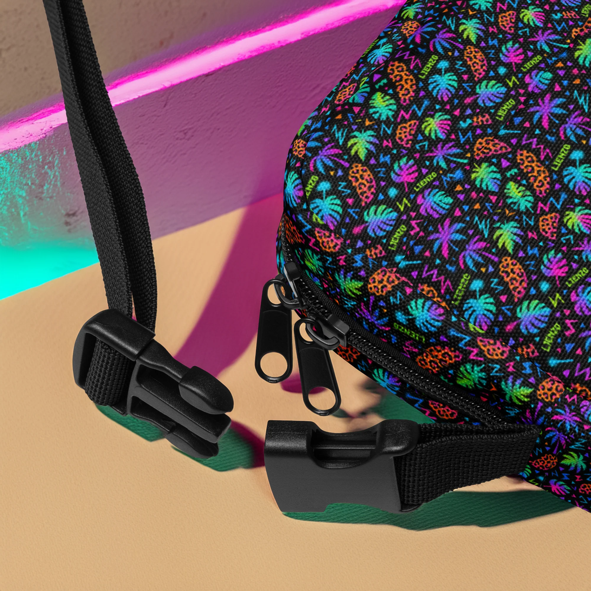 Le Neon Jungle Pattern ne passe pas inaperçu. Compact, pratique et ultra stylé, ce sac à bandoulière est ton nouveau compagnon de route pour les festivals, les balades urbaines ou les aventures tropicales.