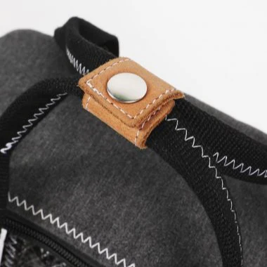 • Logo en cuir embossé 727 Sailbags, cousu avec l’iconique point zigzag