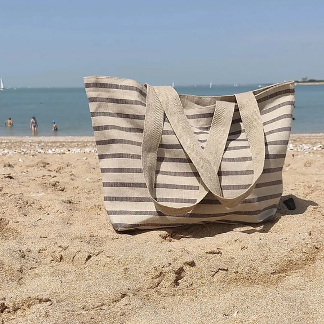 Son style marin avec ses rayures bleu/naturel ou rouge/naturel lui donne un charme intemporel et une élégance estivale qui complétera parfaitement vos tenues d’été.