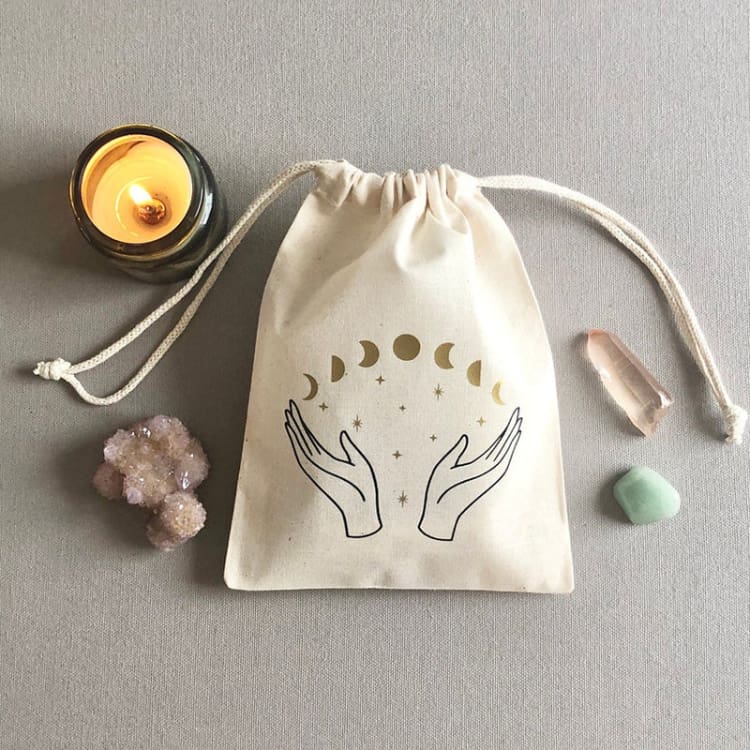Découvrez ce magnifique sac de cartes représentant le cycle de la lune, symbole de croissance et d’espoir.