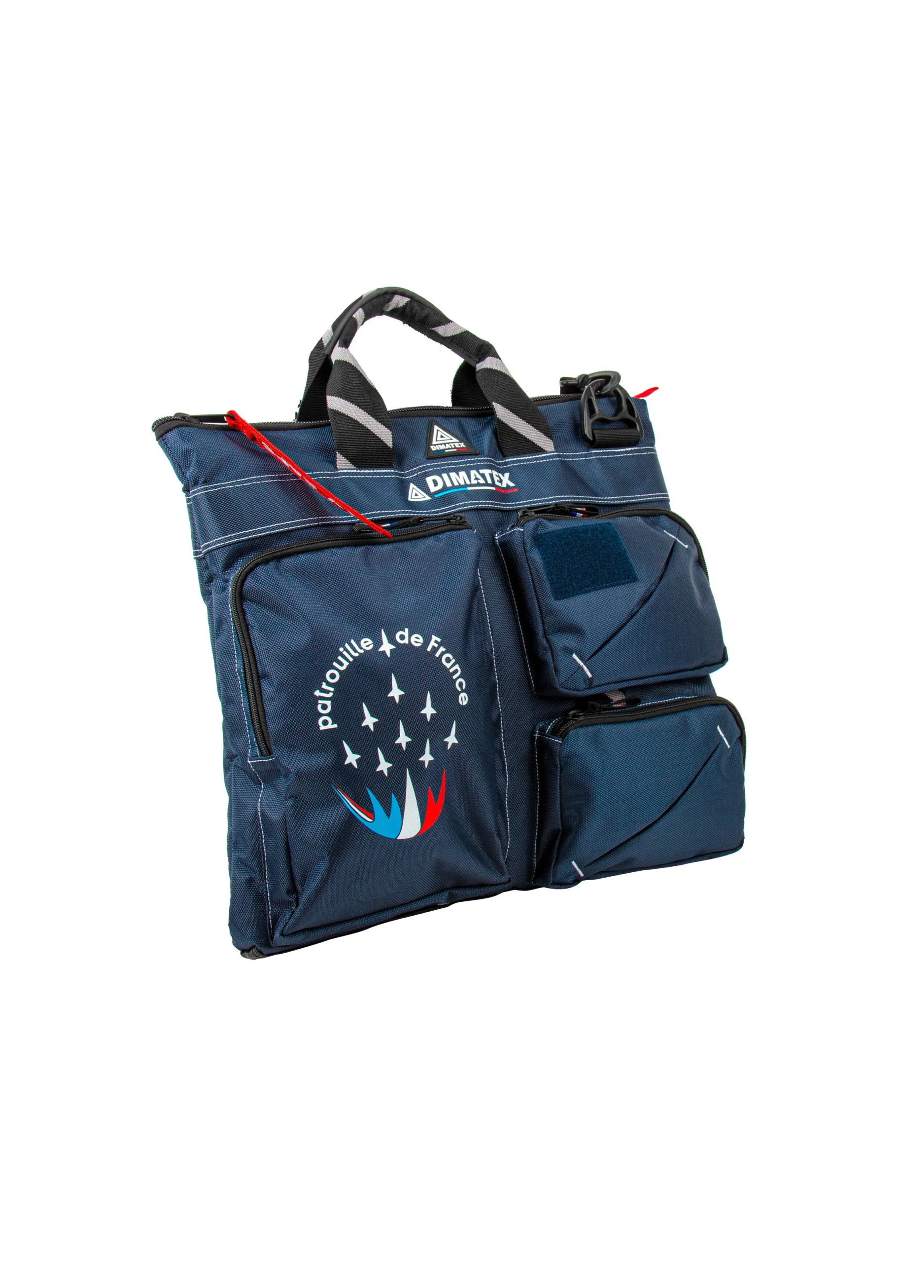 Dimensions : 45 cm x 45 cm Poid : 1,270kgCaractéristiques techniques- Tissu 1680 Deniers- Doublure matelassée, antichoc,sur fond de carte aéronautique- Portage à main (deux poignées)- Portage en bandoulière (amovible)- 1 crochet de suspension cabine- 3 poches zippées extérieures- Support plate name, cocarde et patch Patrouille de France- 2 poches zippées à filets intérieures- 1 poche zippée intérieure