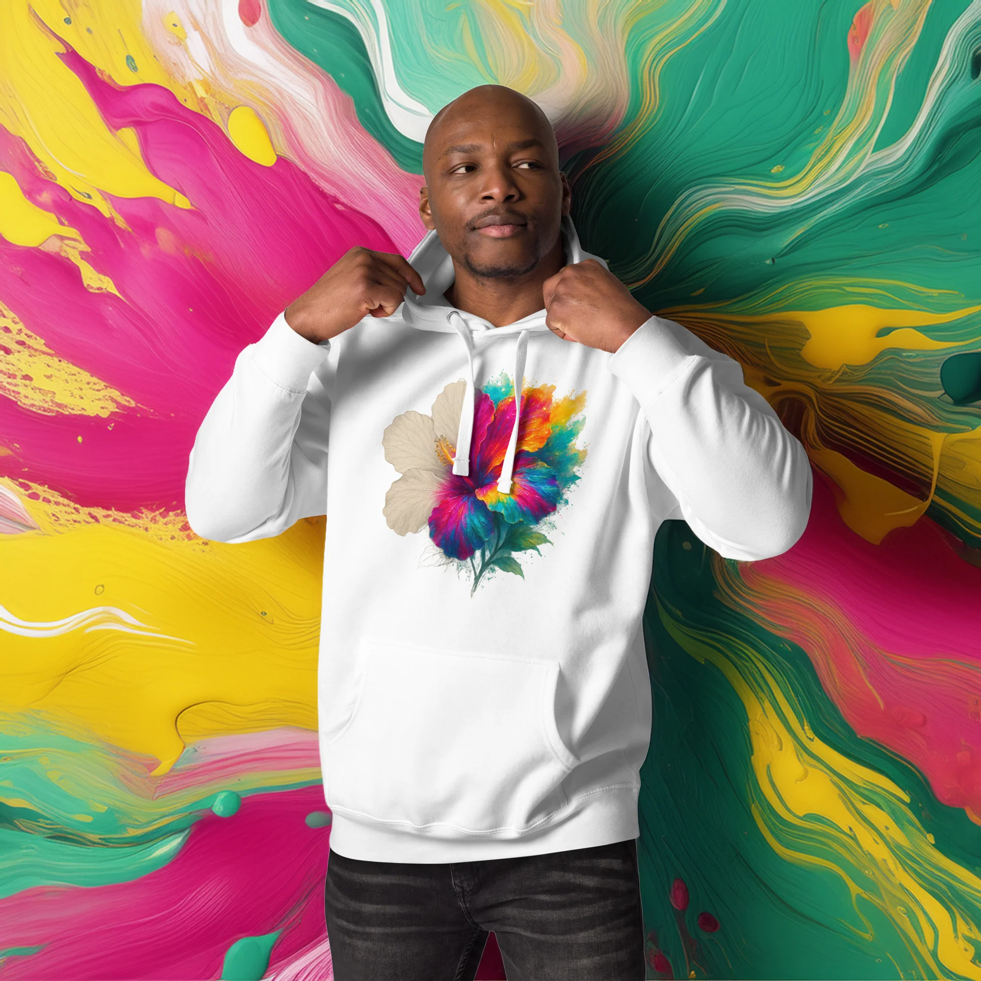 Le Sweat à Capuche “Hibiscus Spirit” incarne cette dualité : douceur et puissance, sérénité et feu intérieur.