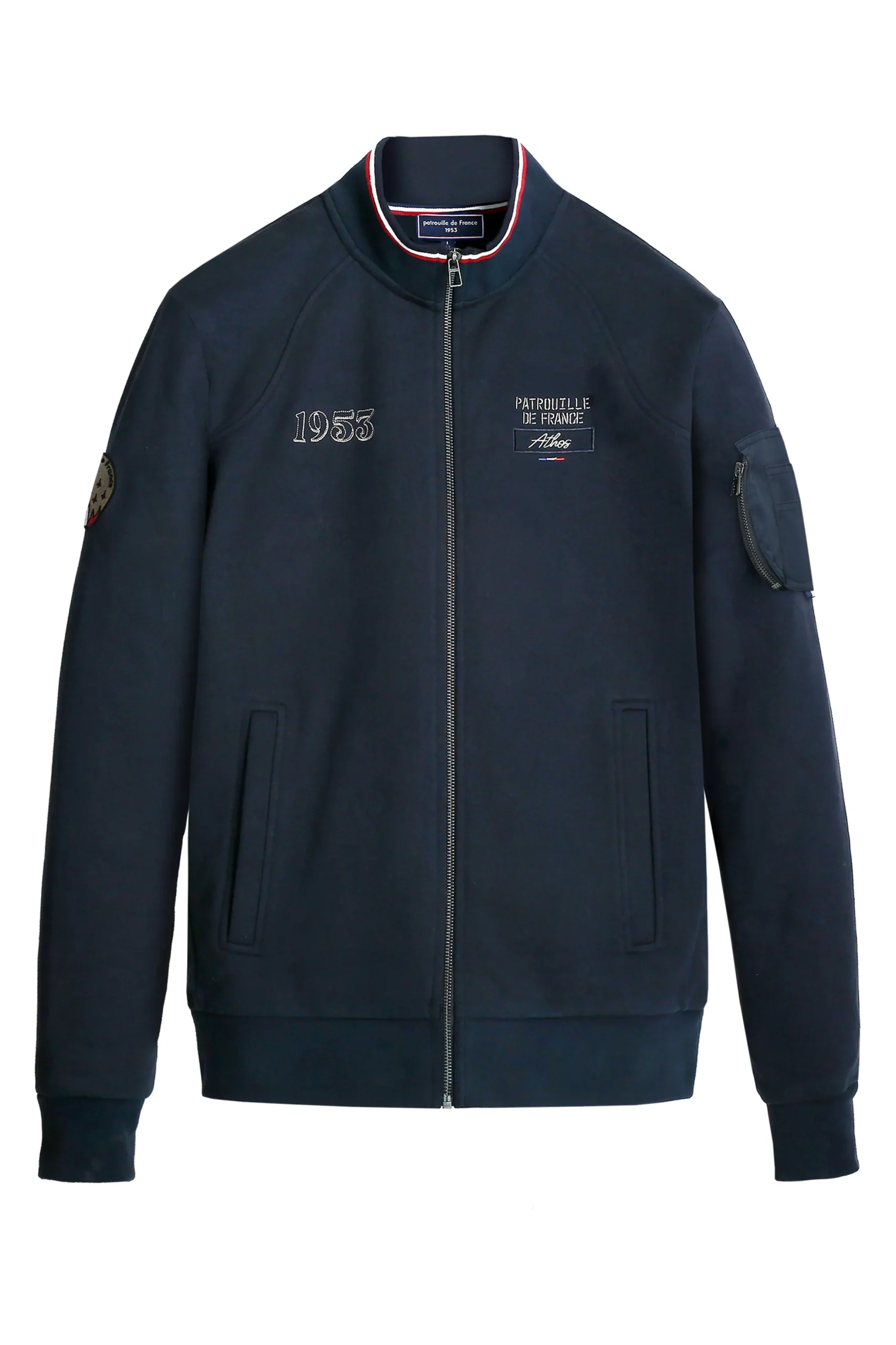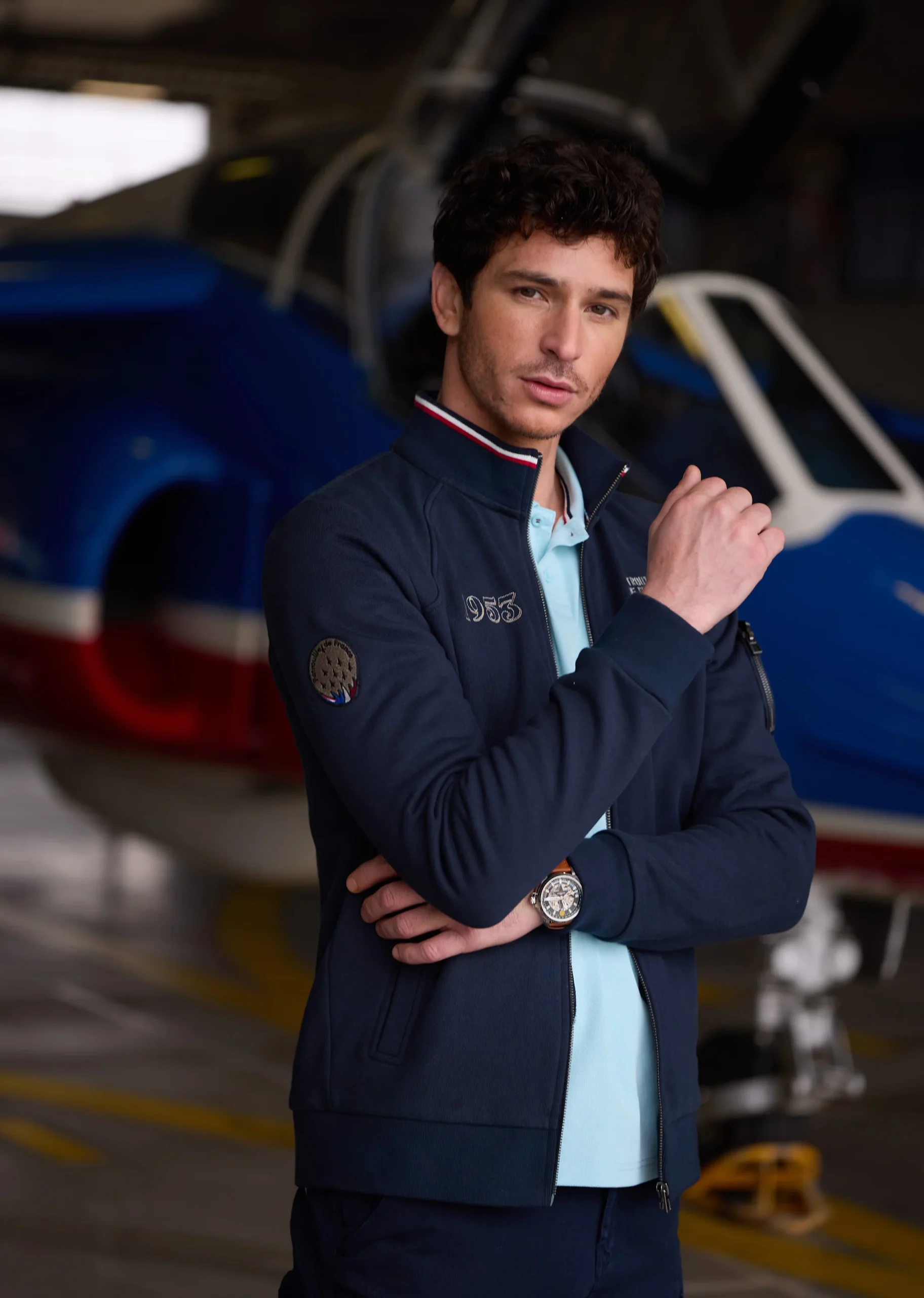 La veste Supreme Cockpit revisite l’esprit aviateur avec une touche contemporaine. Confectionnée en 100 % coton, elle associe confort et style structuré. Broderies « 1953 » et « Patrouille de France » sur la poitrine, poche zippée sur la manche, 2 poches latérales passepoilées, et col côtelé rayé tricolore : chaque détail affirme son héritage aéronautique.