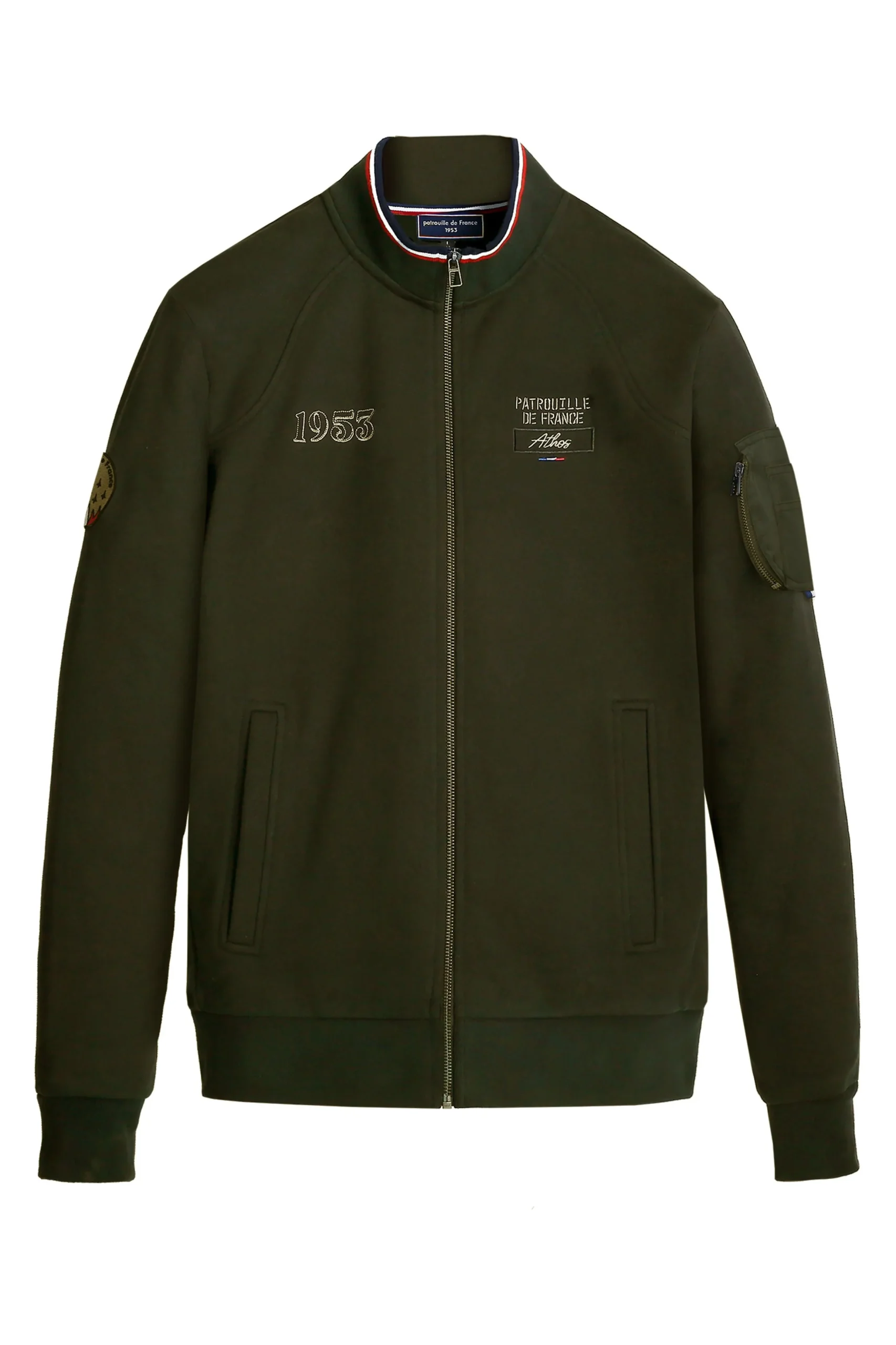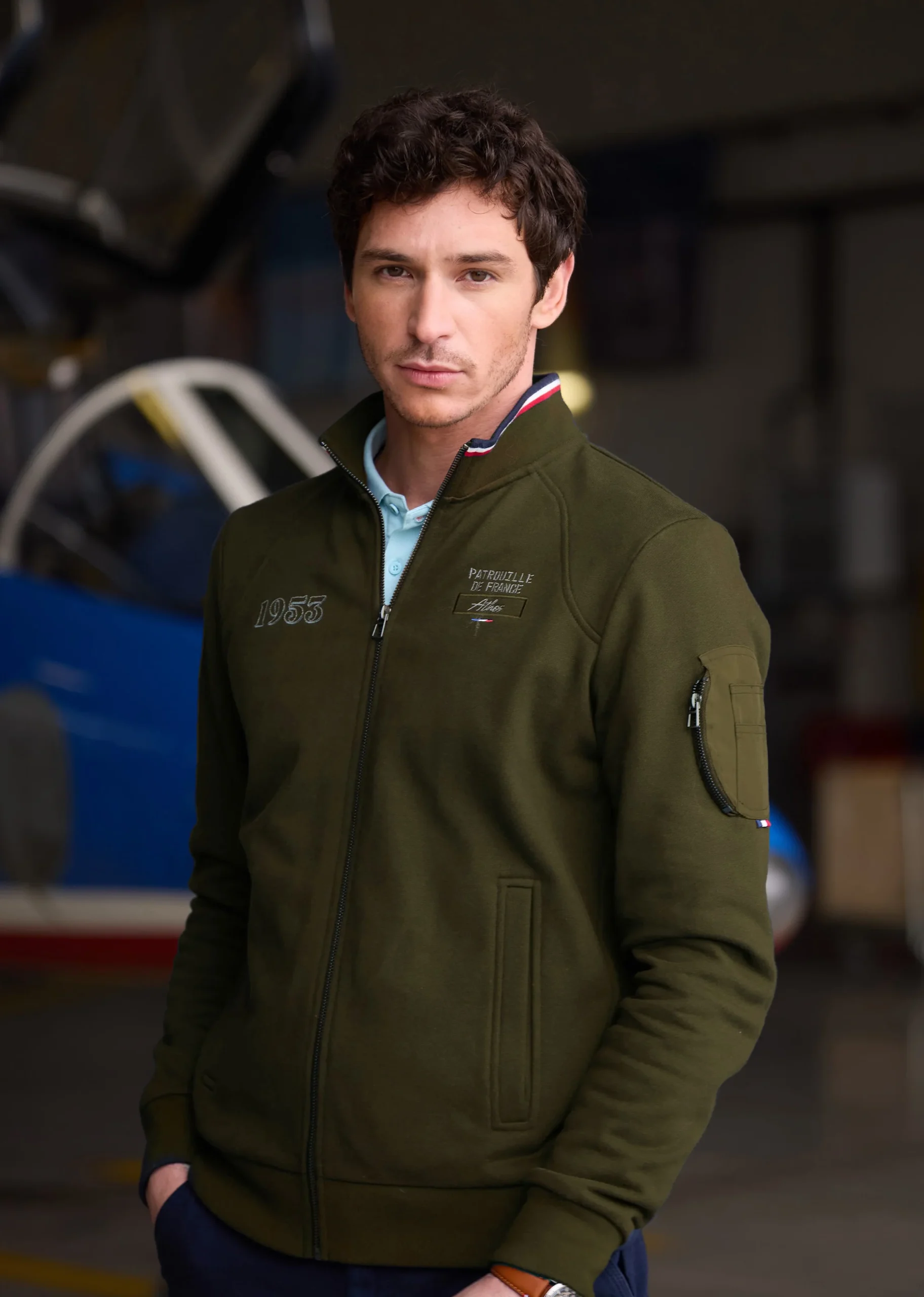 La veste Supreme Cockpit revisite l’esprit aviateur avec une touche contemporaine. Confectionnée en 100 % coton, elle associe confort et style structuré. Broderies « 1953 » et « Patrouille de France » sur la poitrine, poche zippée sur la manche, 2 poches latérales passepoilées, et col côtelé rayé tricolore : chaque détail affirme son héritage aéronautique.