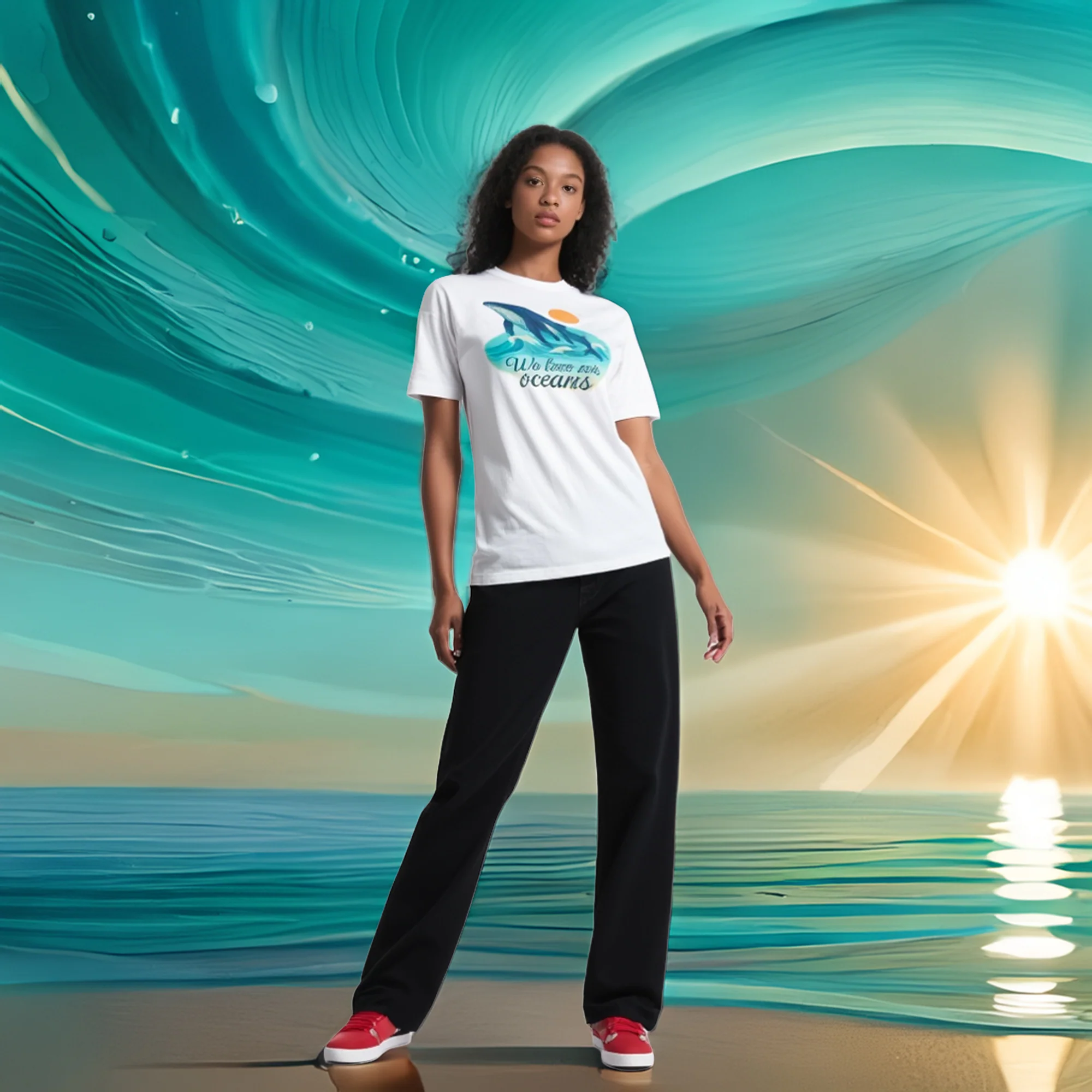 Inspiré des grands cétacés, des vagues turquoise et du soleil doré, ce t-shirt célèbre la beauté de nos mers et rappelle que la mode peut (et doit) avoir du sens.