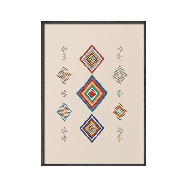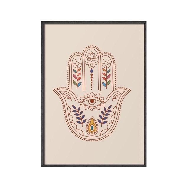 Sur ces toiles, vous retrouverez, soit la main de Fatma ou des compositions géométriques aux couleurs douces sur fond beige.