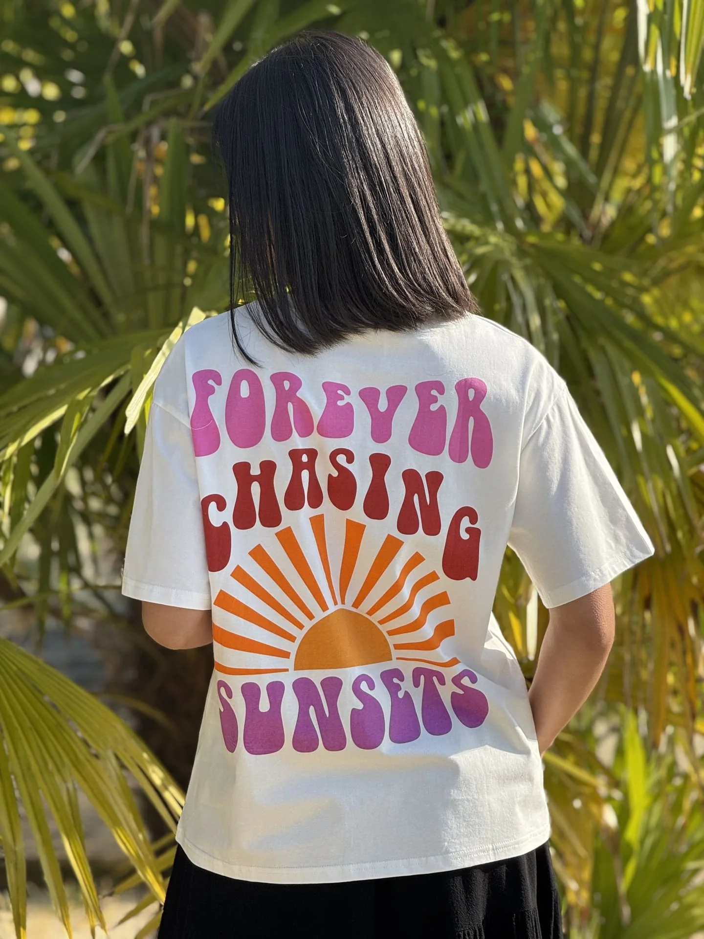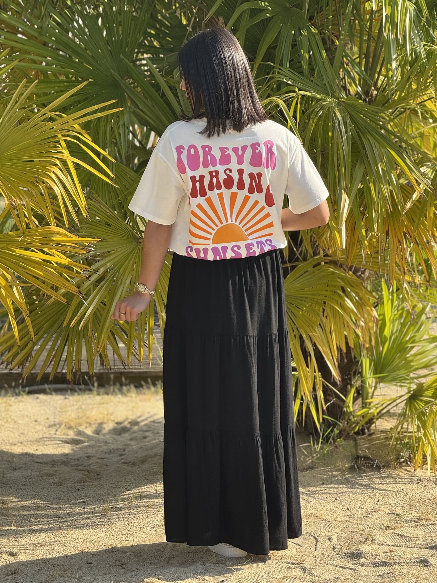 • T-shirt à mc col rond inscription sunsets