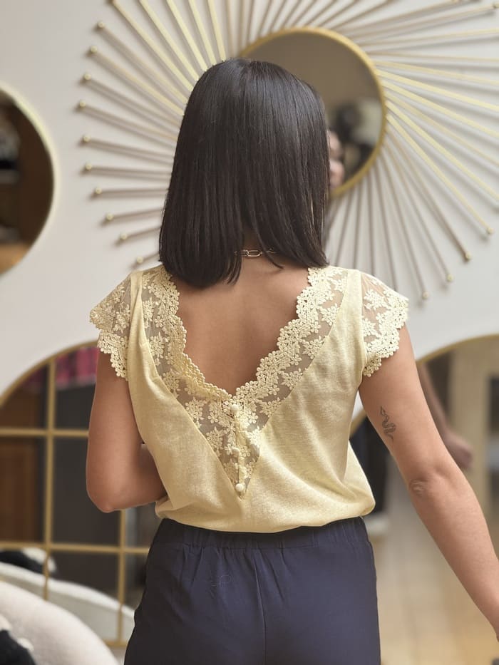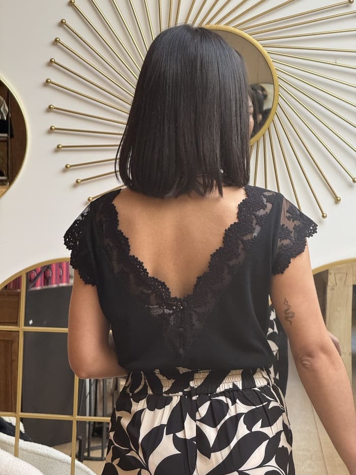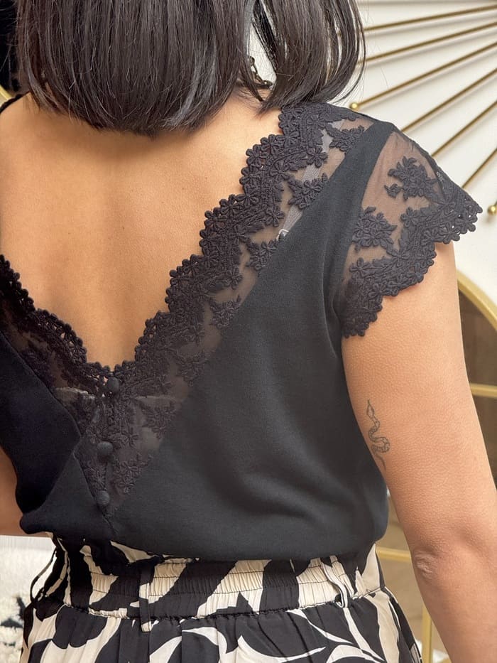• T-shirt à mc en dentelle col rond