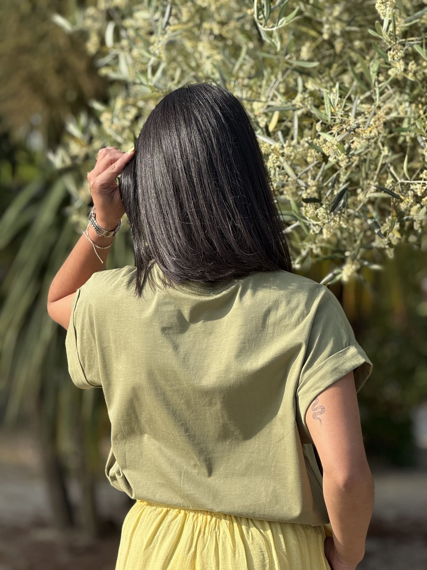 T-shirt à mc col rond imprimé petit ourson sur poitrine Justine mesure 1m69 et Mathilde mesure 1m65. Elles portent la taille S pour ce modèle. Taille : S (36) / M (38) / L (40) Composition & entretien : 100% COTON Lavage à la main conseillé Besoin d’un conseil ? Consultez notre foire aux questions […]