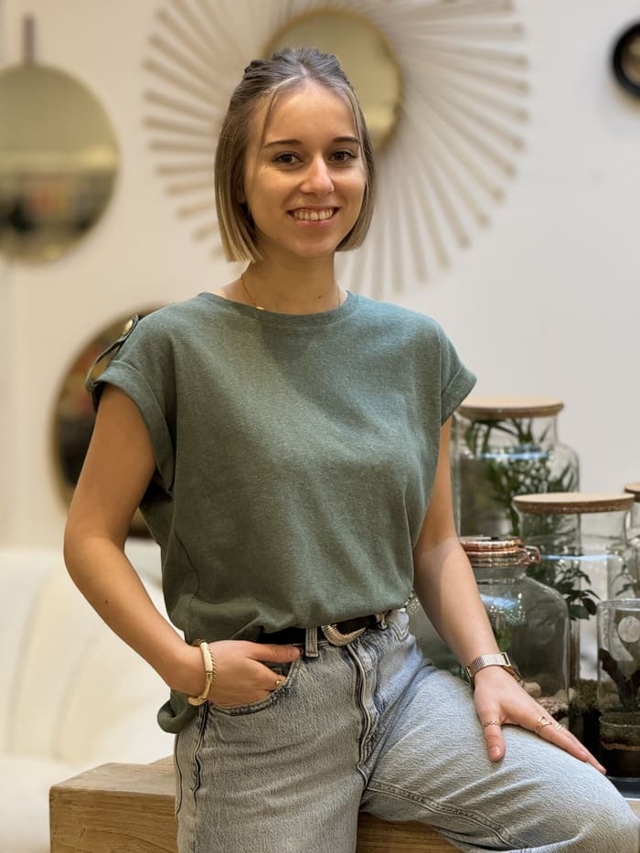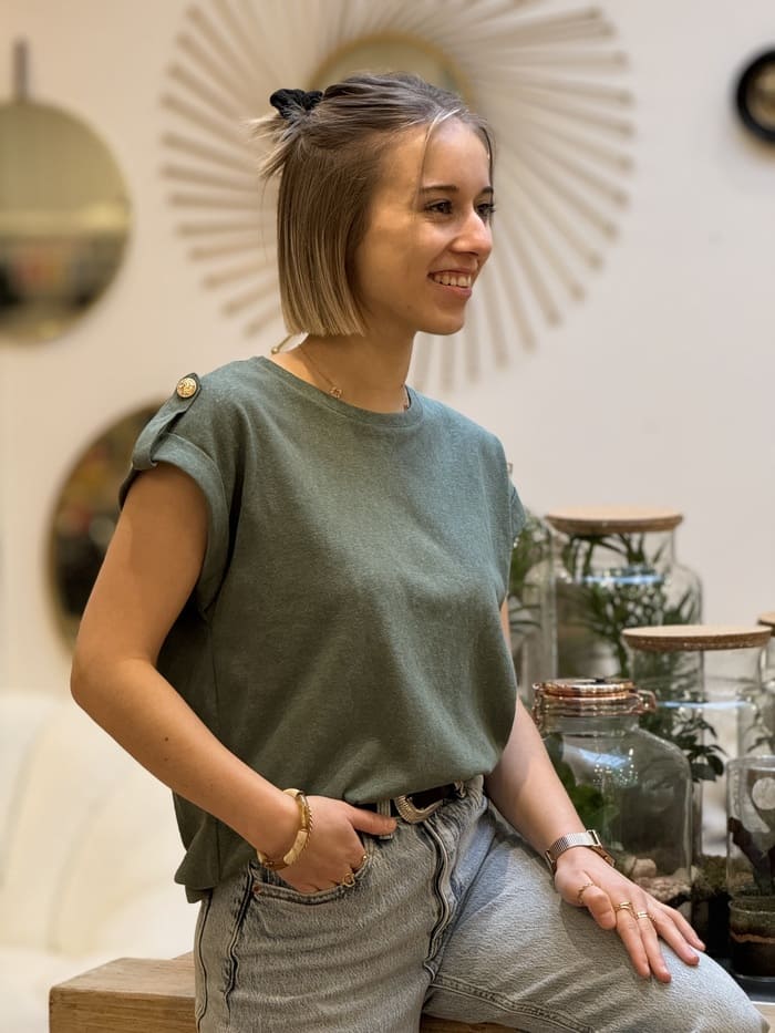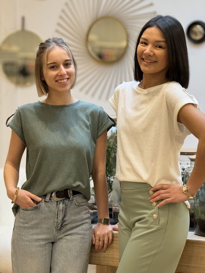 T-shirt à manches courtes col rond uni Taille : Charlotte mesure 1m55 et Mathilde mesure 1m65. Elles portent la taille S pour ce modèle. Nous vous recommandons de porter votre taille habituelle. Taille : XS (34) / S (36) / M (38) / L (40) Composition & entretien : 100% coton Lavage à la main […]