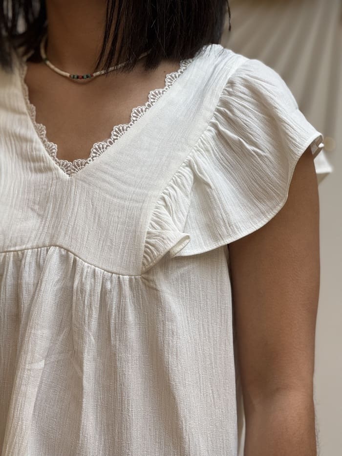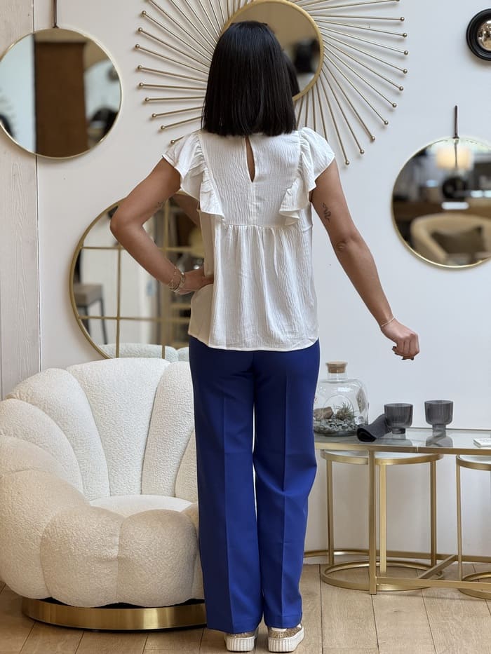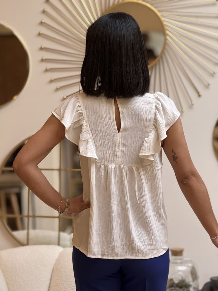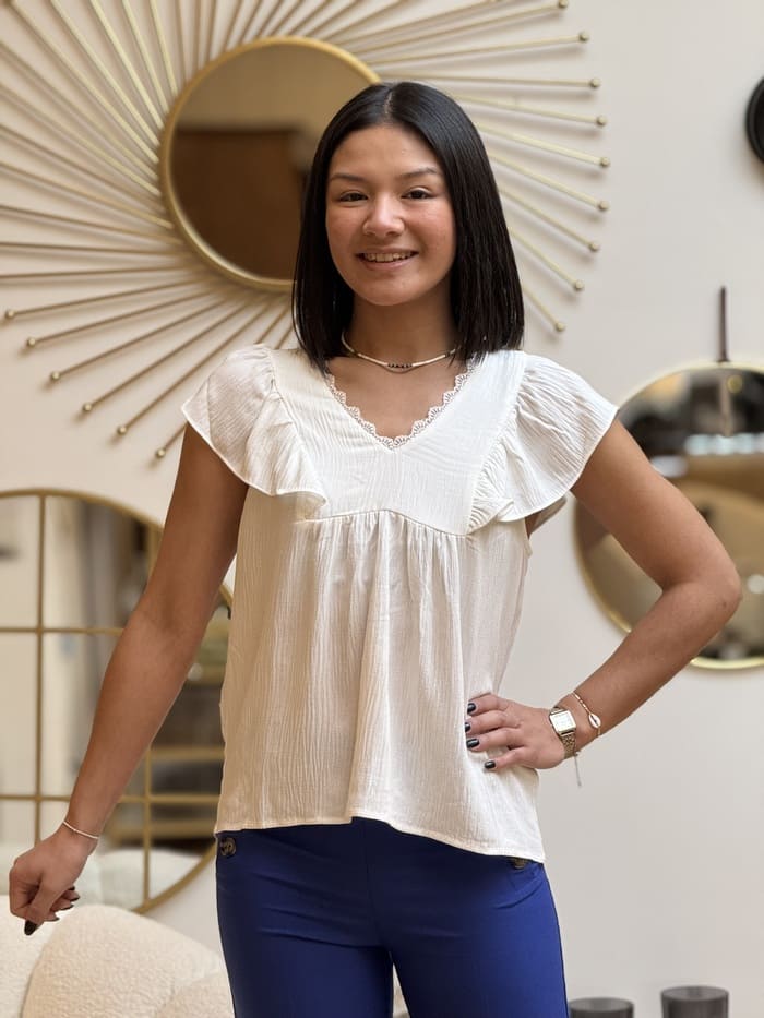 - T-shirt col v à mc froufrou devant