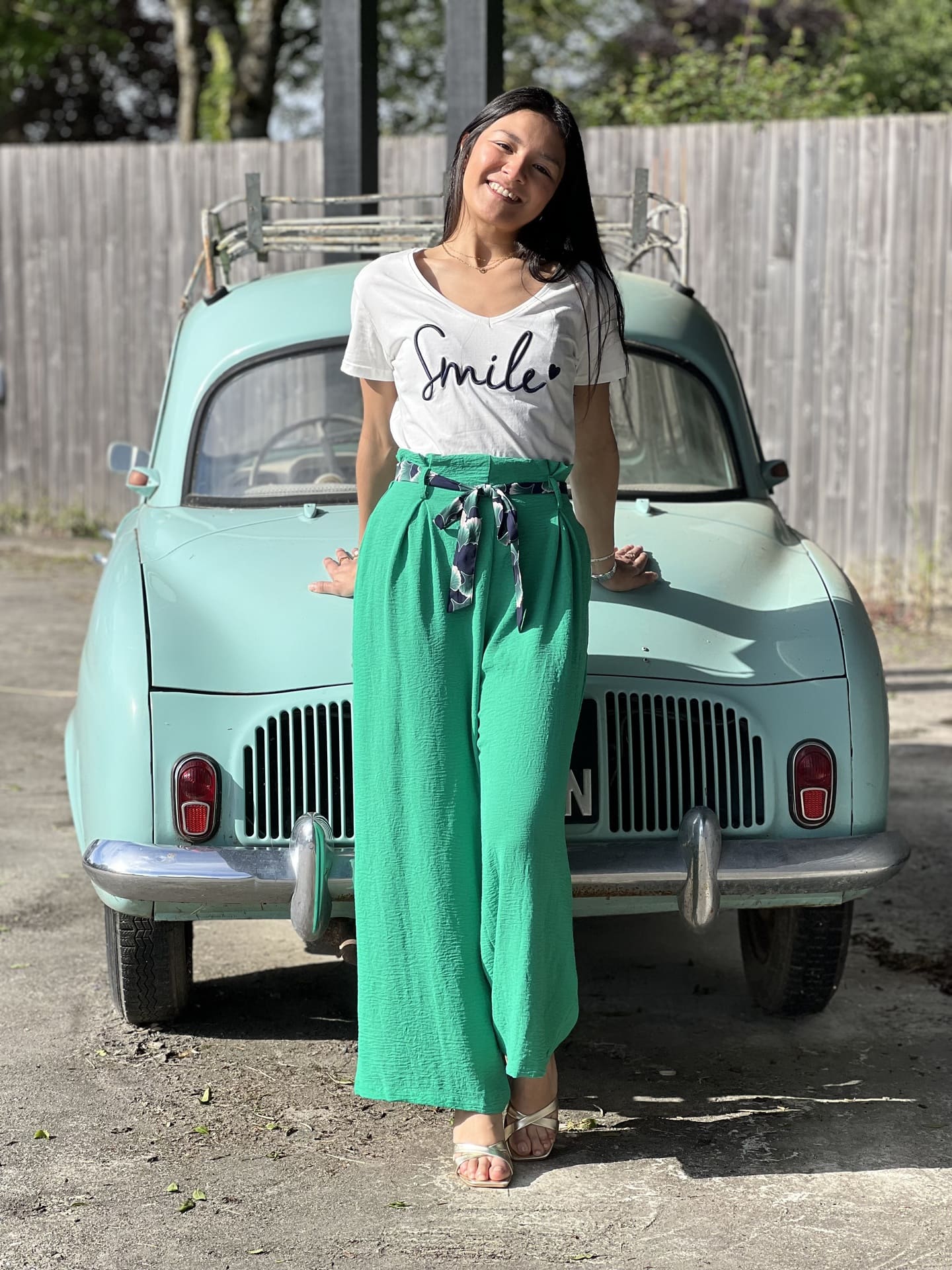 - T-SHIRT À COL V INSCRIPTION SMILE AVEC CŒUR