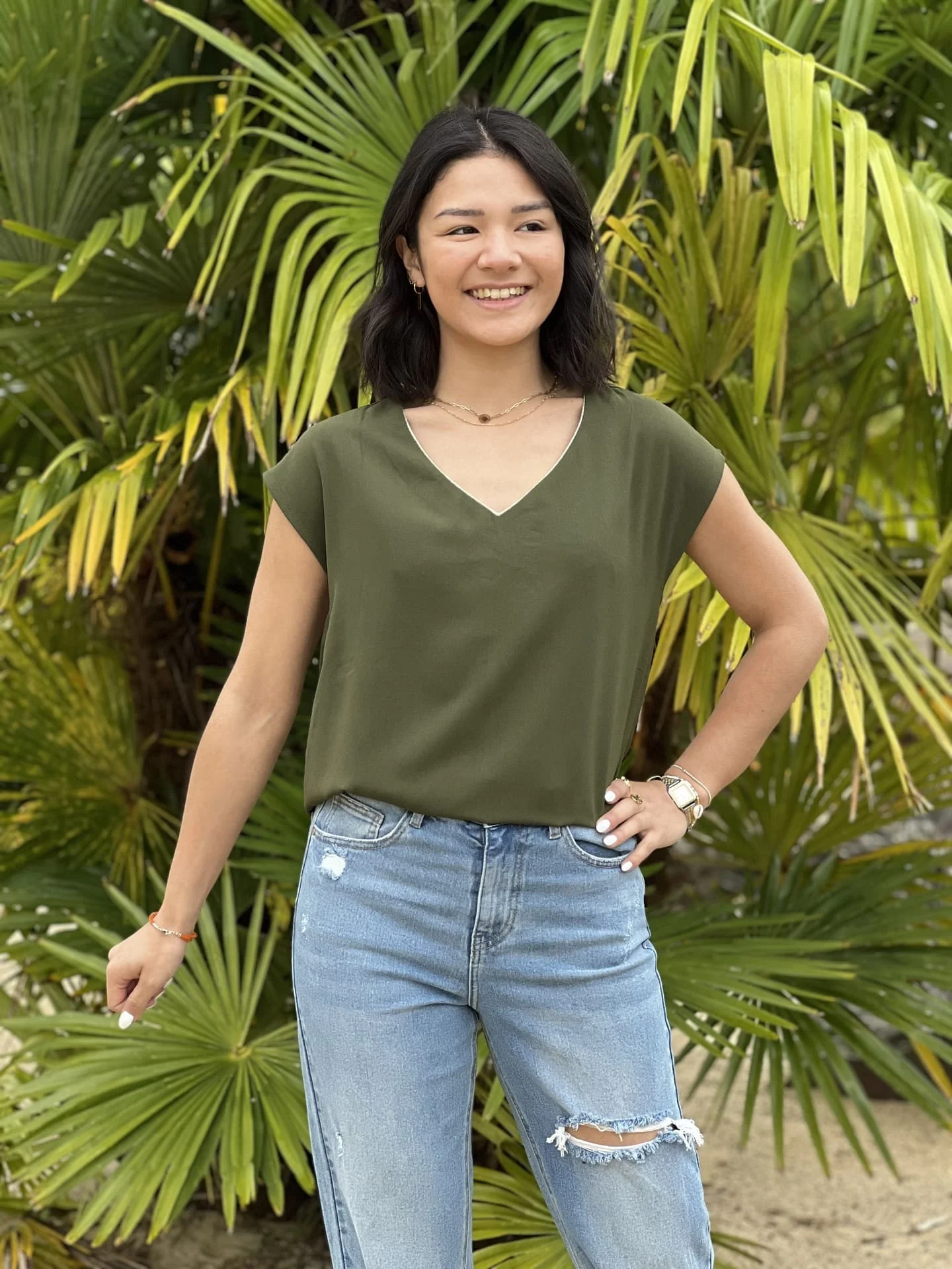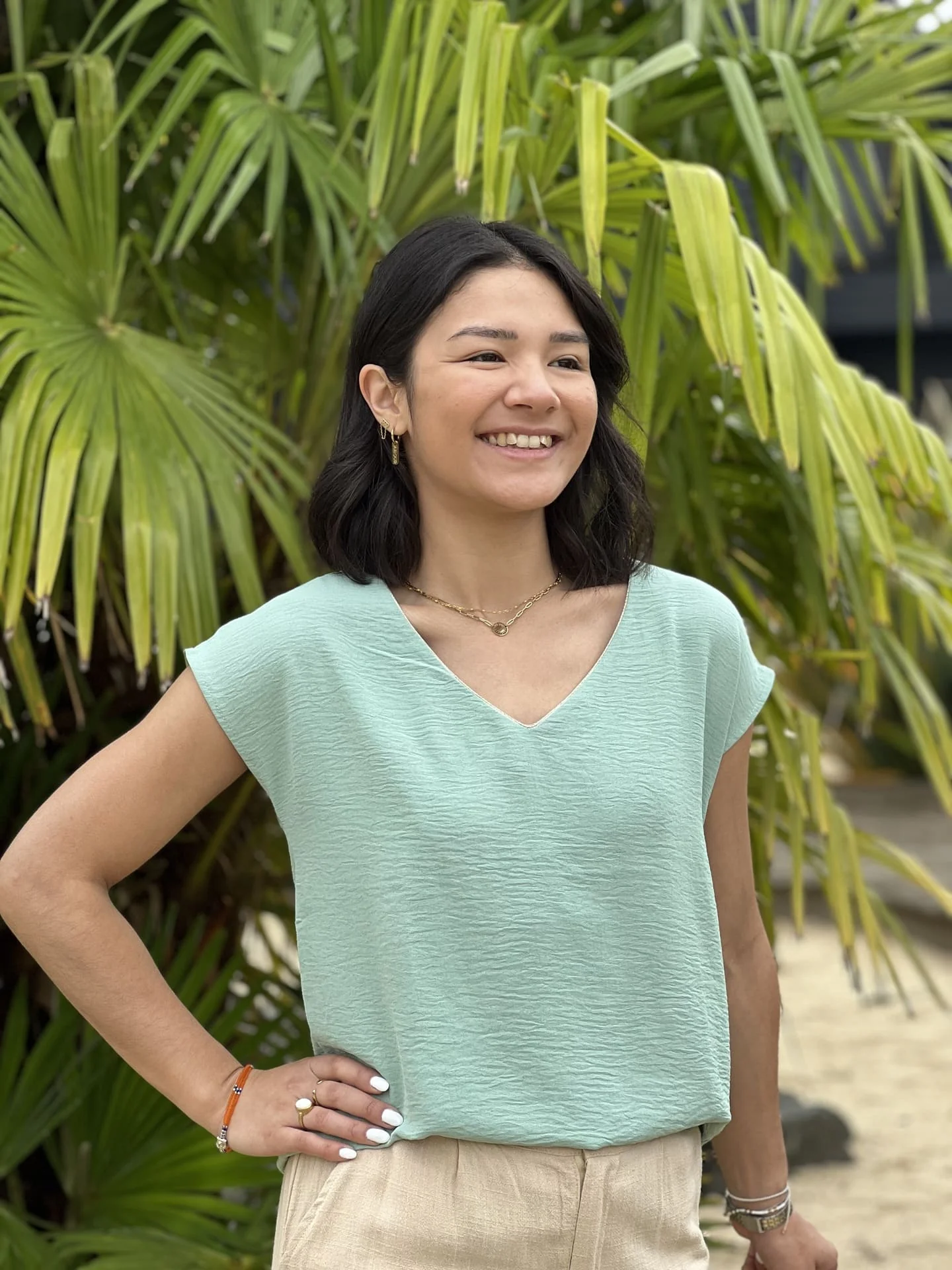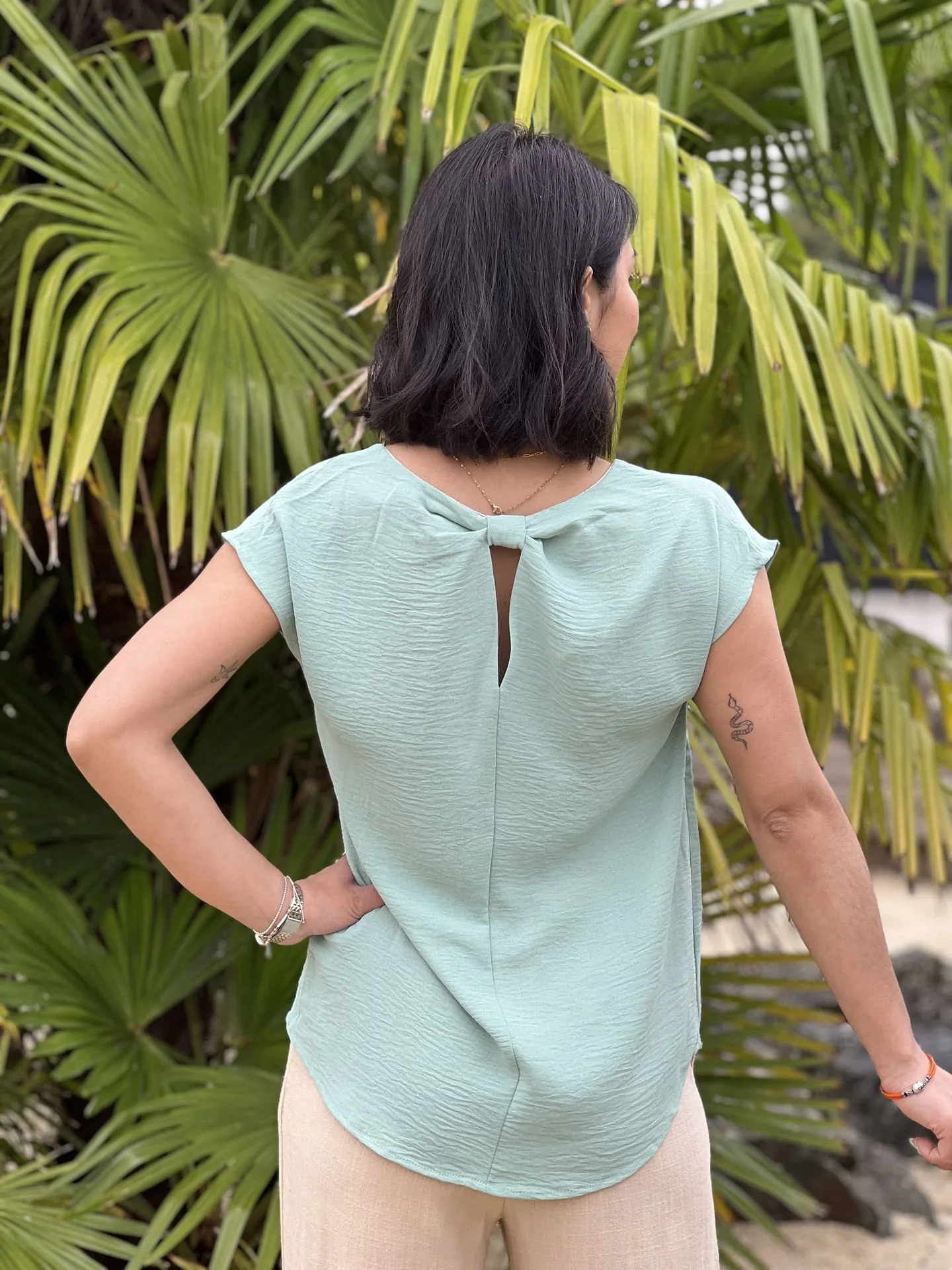 - TOP MC COL V LISERE DORE – NŒUD DANS LE DOS