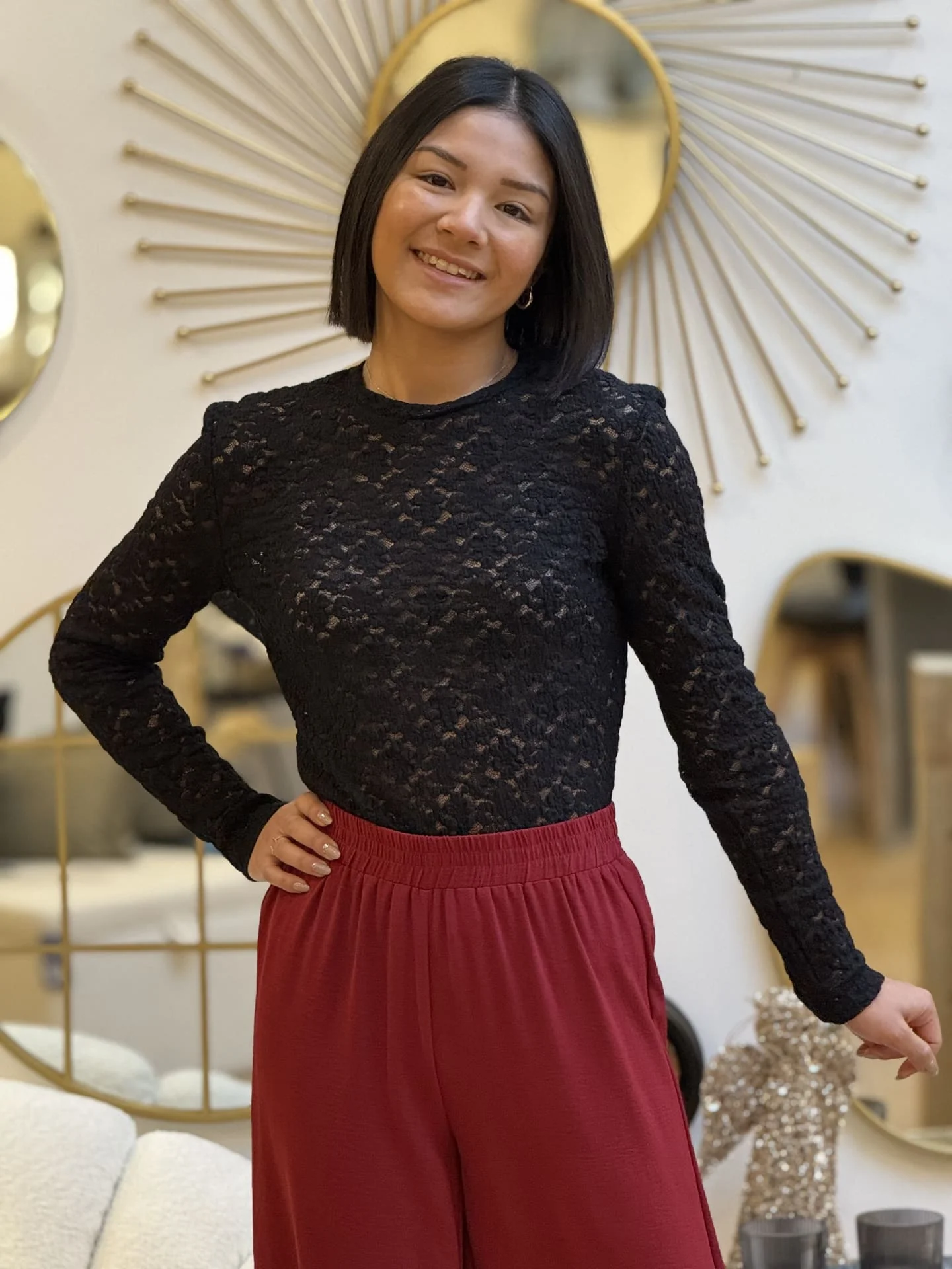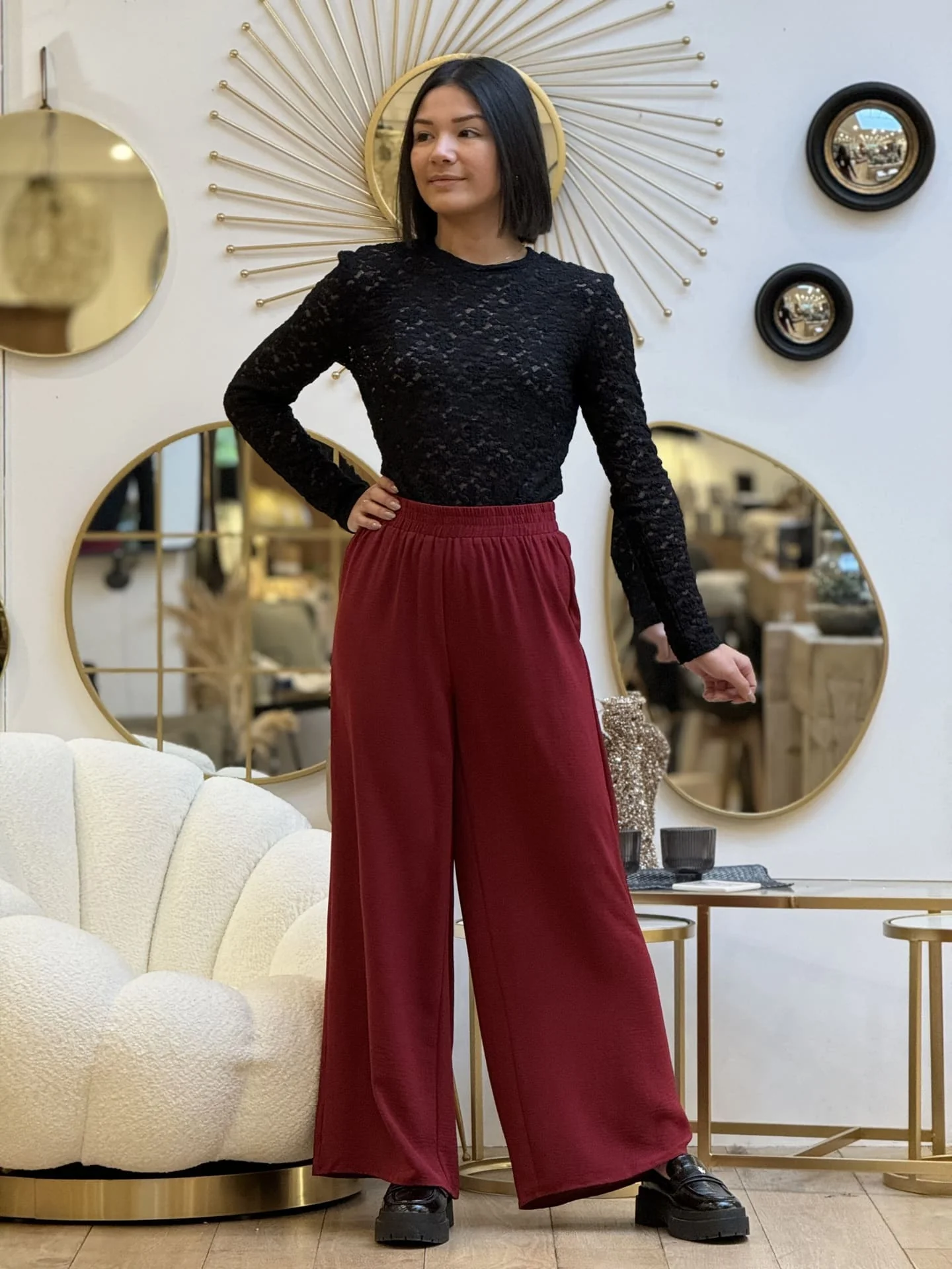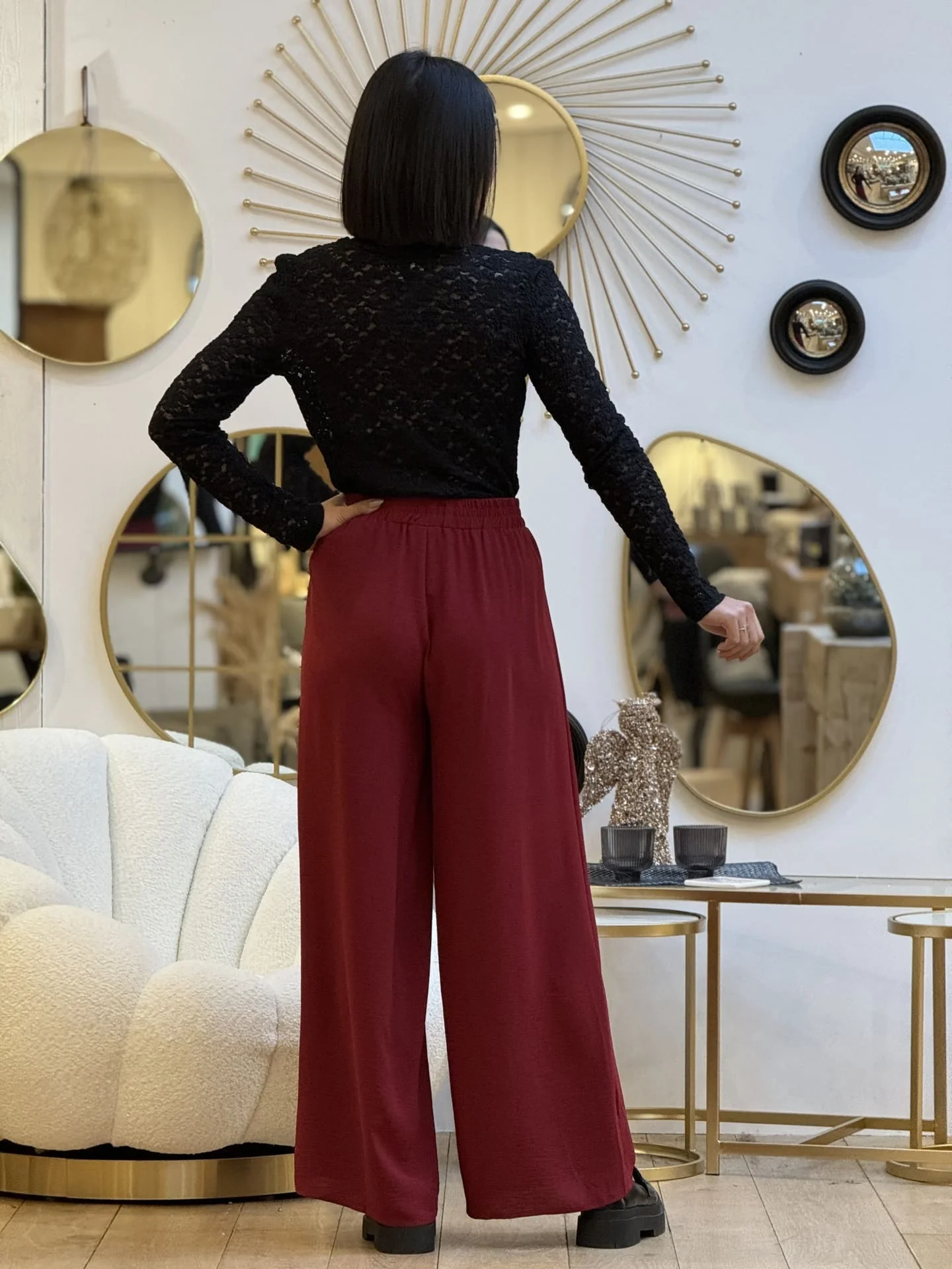 Mathilde mesure 1m65. Elle porte la taille S pour ce modèle.