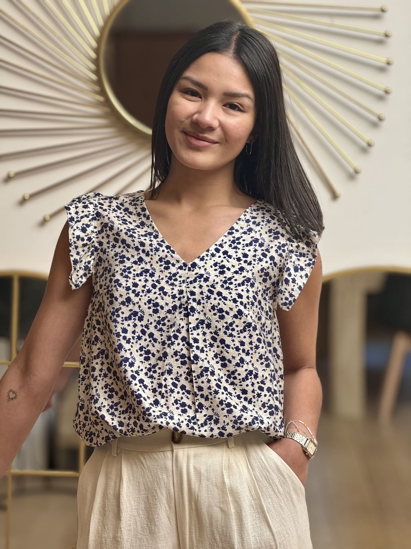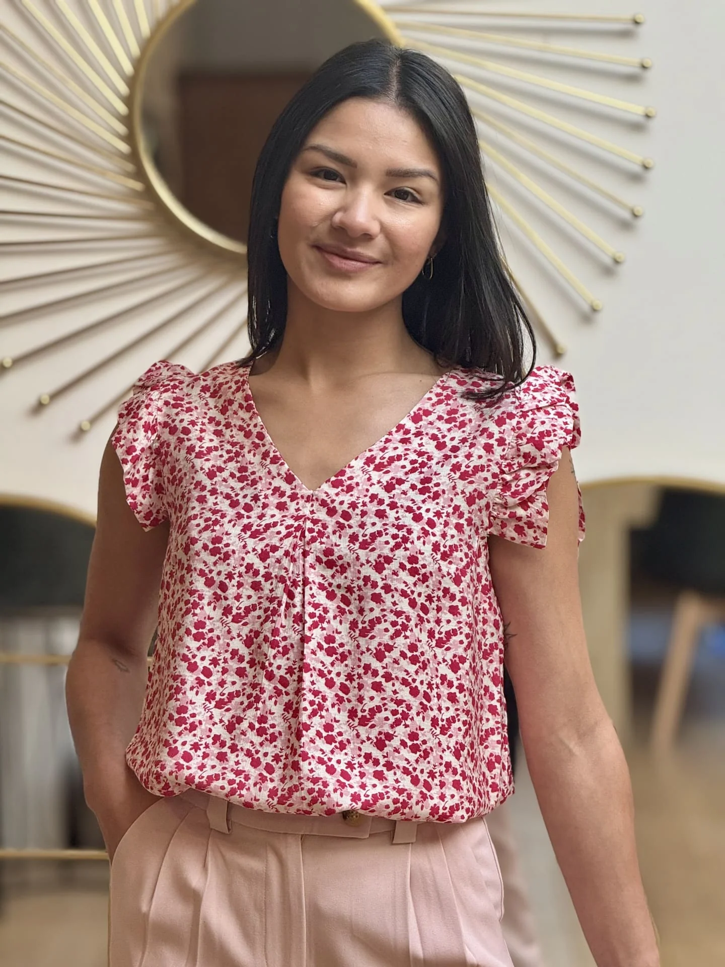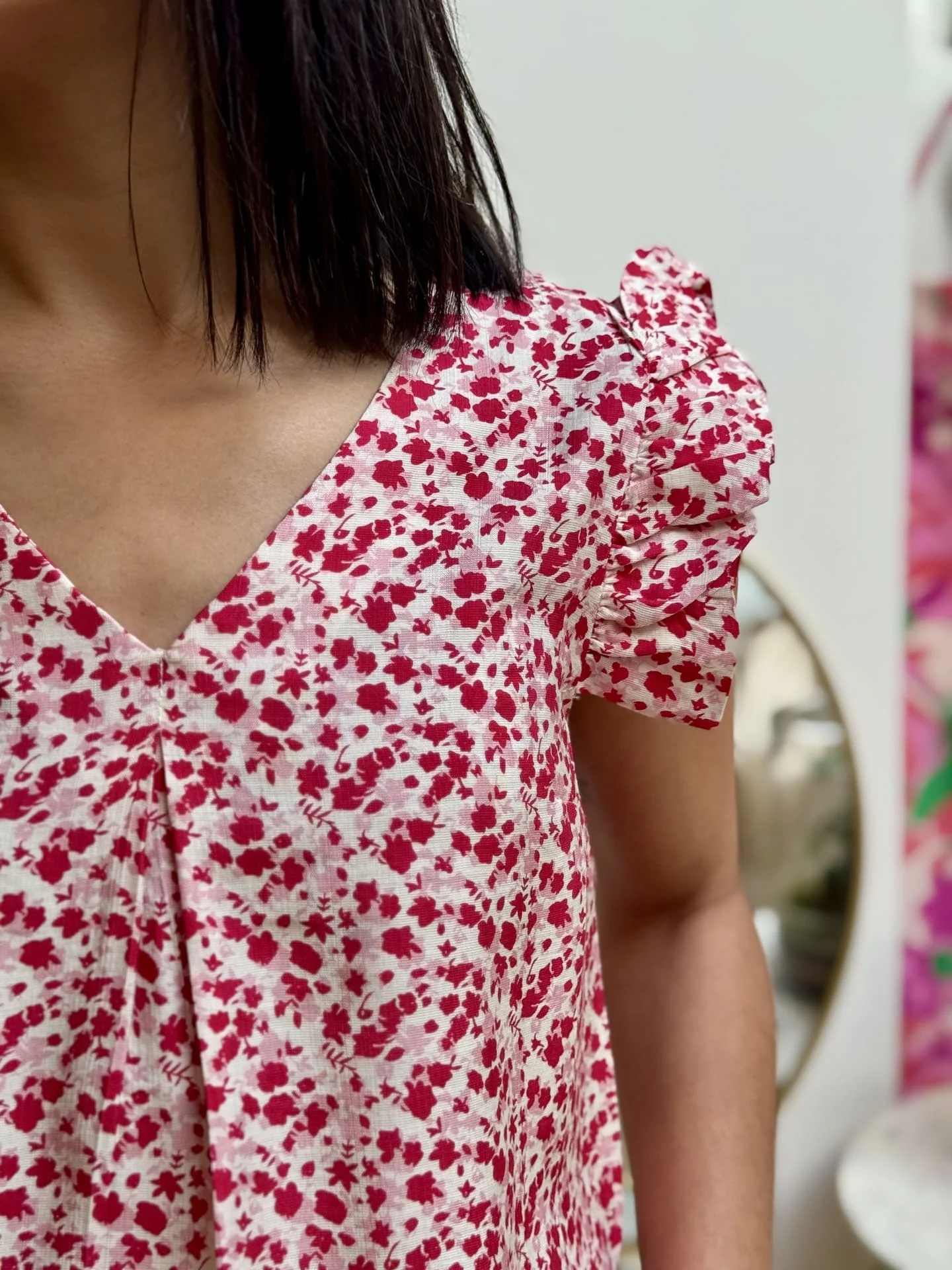 - Top à mc froufrou col v imprimé fleuris