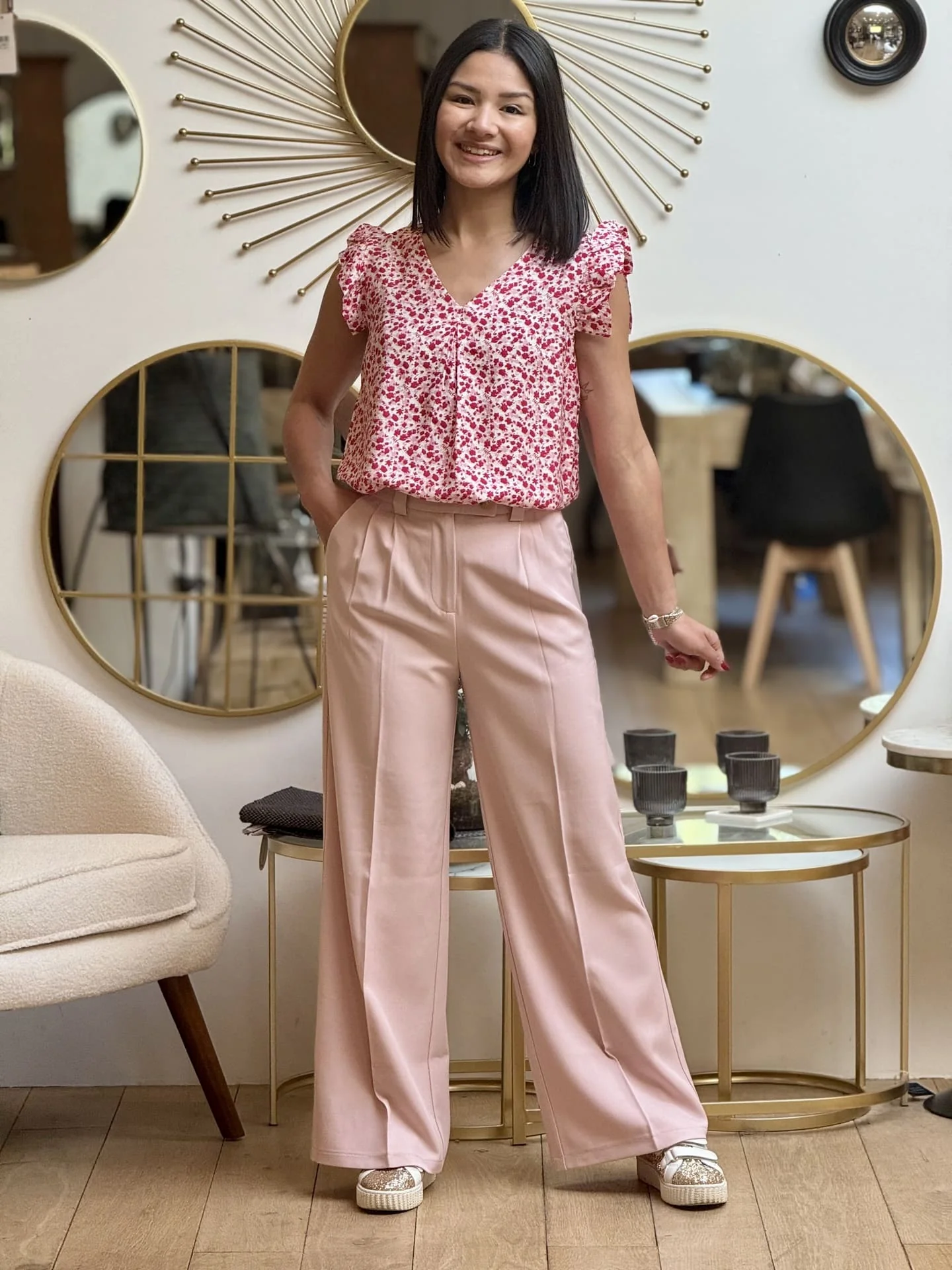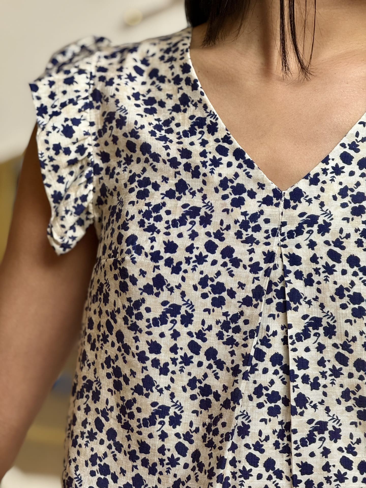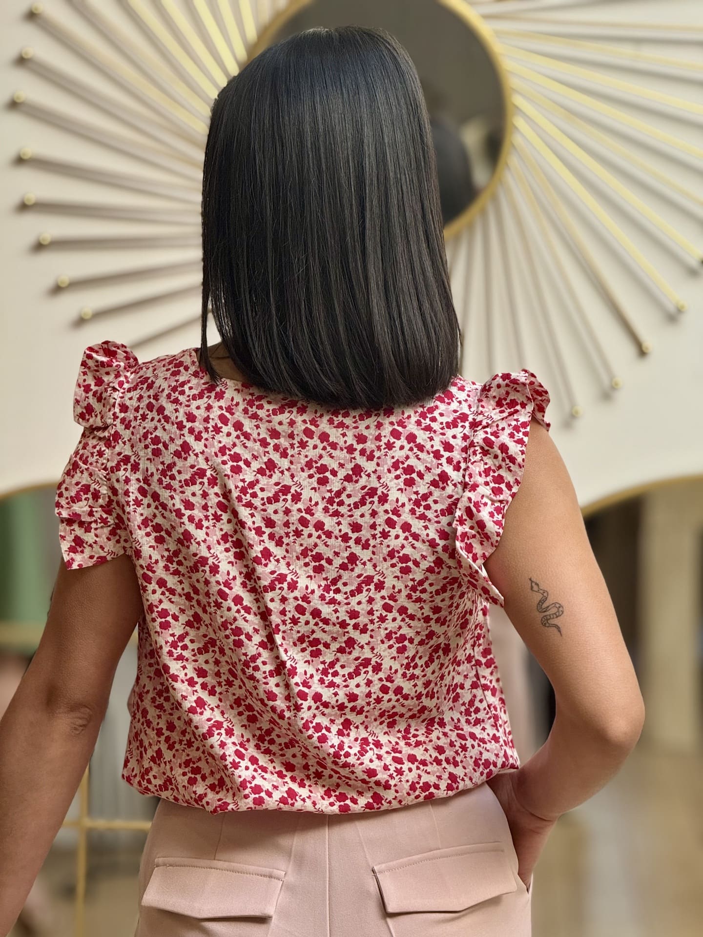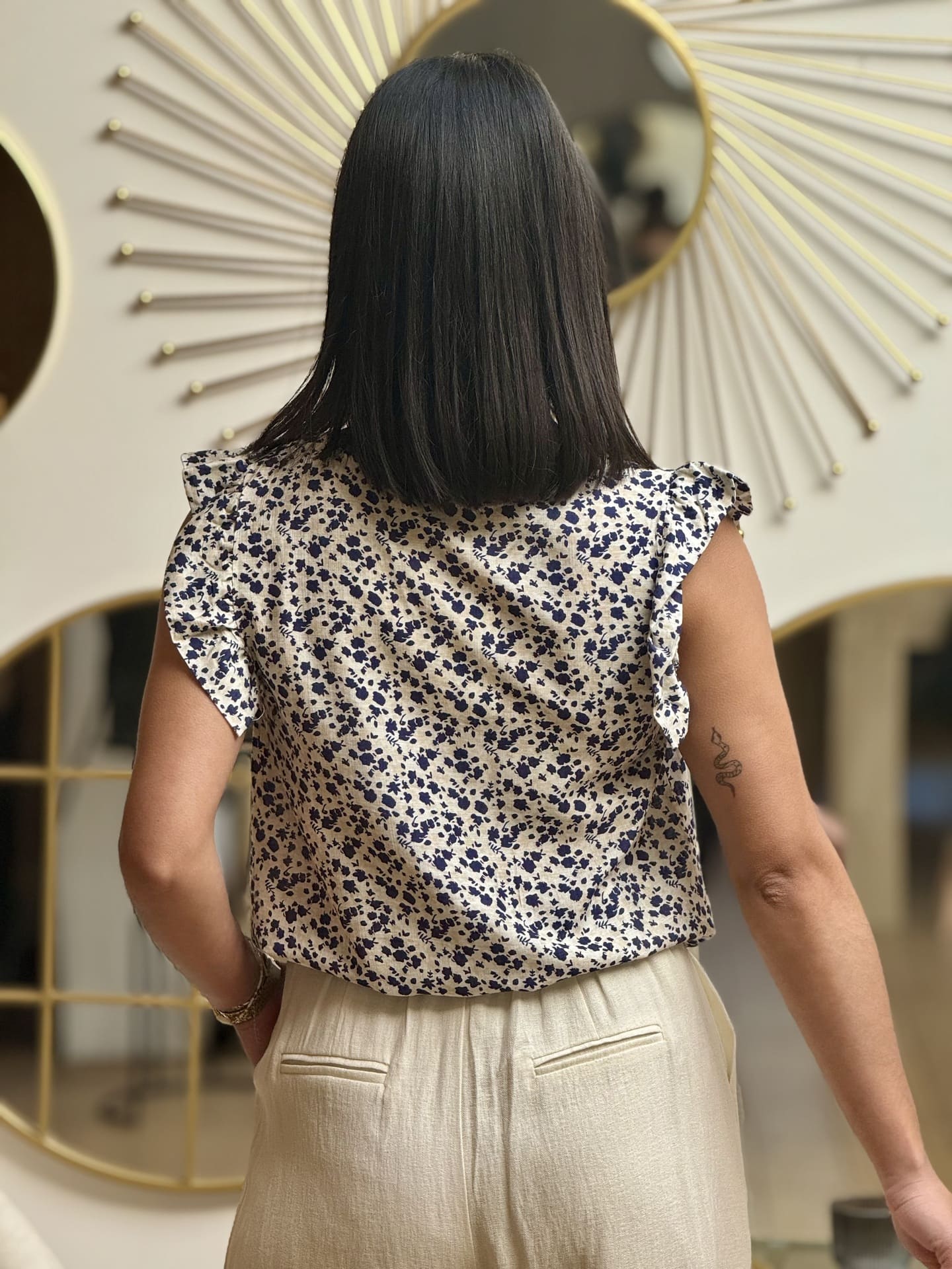 - Top à mc froufrou col v imprimé fleuris