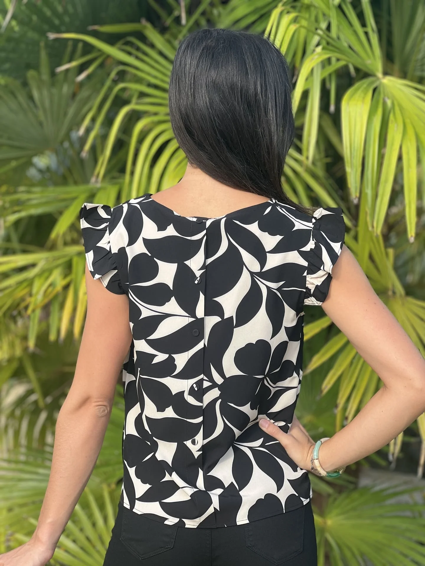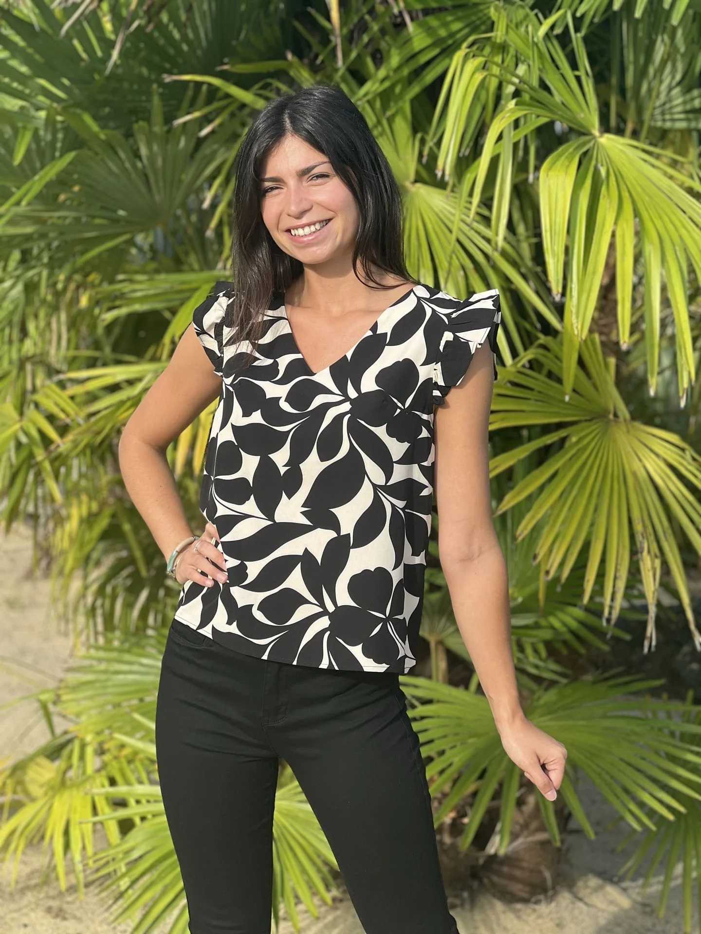 - Top à mc froufrou col v imprimé grosses fleurs