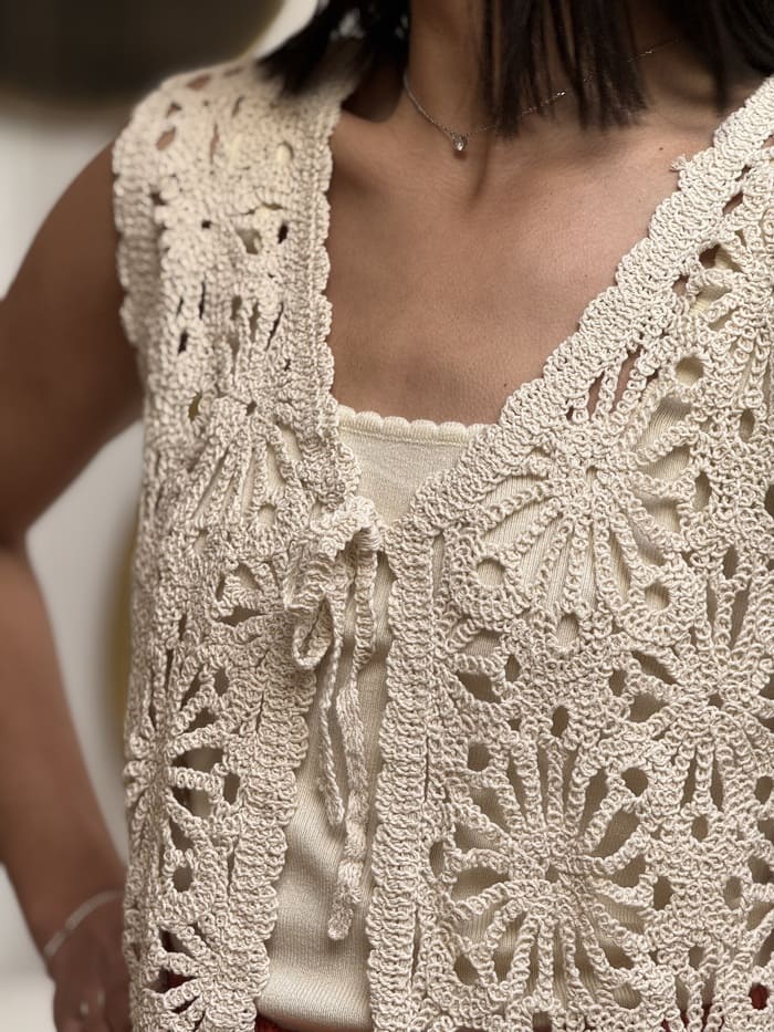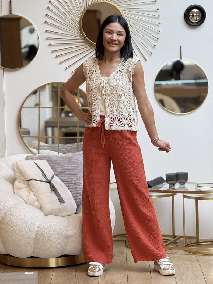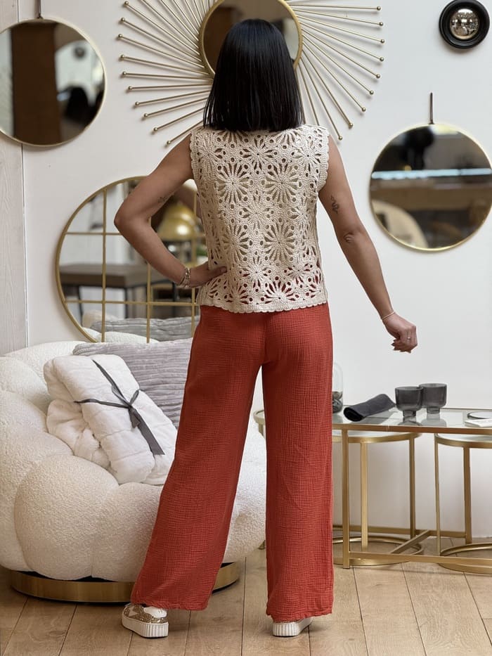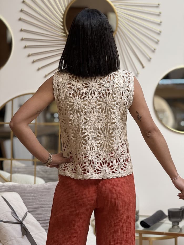 Top sans manche à crochets avec un lien Taille : Justine mesure 1m69 et Jeanne mesure 1m68. Elles portent la taille Taille unique pour ce modèle. Taille : Taille unique Convient de la taille 36 à 42. Composition & entretien : 100% COTON Lavage à la main conseillé Besoin d’un conseil ? Consultez notre foire […]