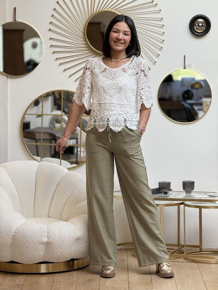 TOP A MC CROCHET Taille : Mathilde mesure 1m65. Elle porte la taille taille unique pour ce modèle. Taille : Taille unique Convient de la taille 36 à 42. Composition & entretien : 100% POLYESTER Lavage à la main conseillé Besoin d’un conseil ? Consultez notre foire aux questions ou contactez-nous via notre formulaire de […]