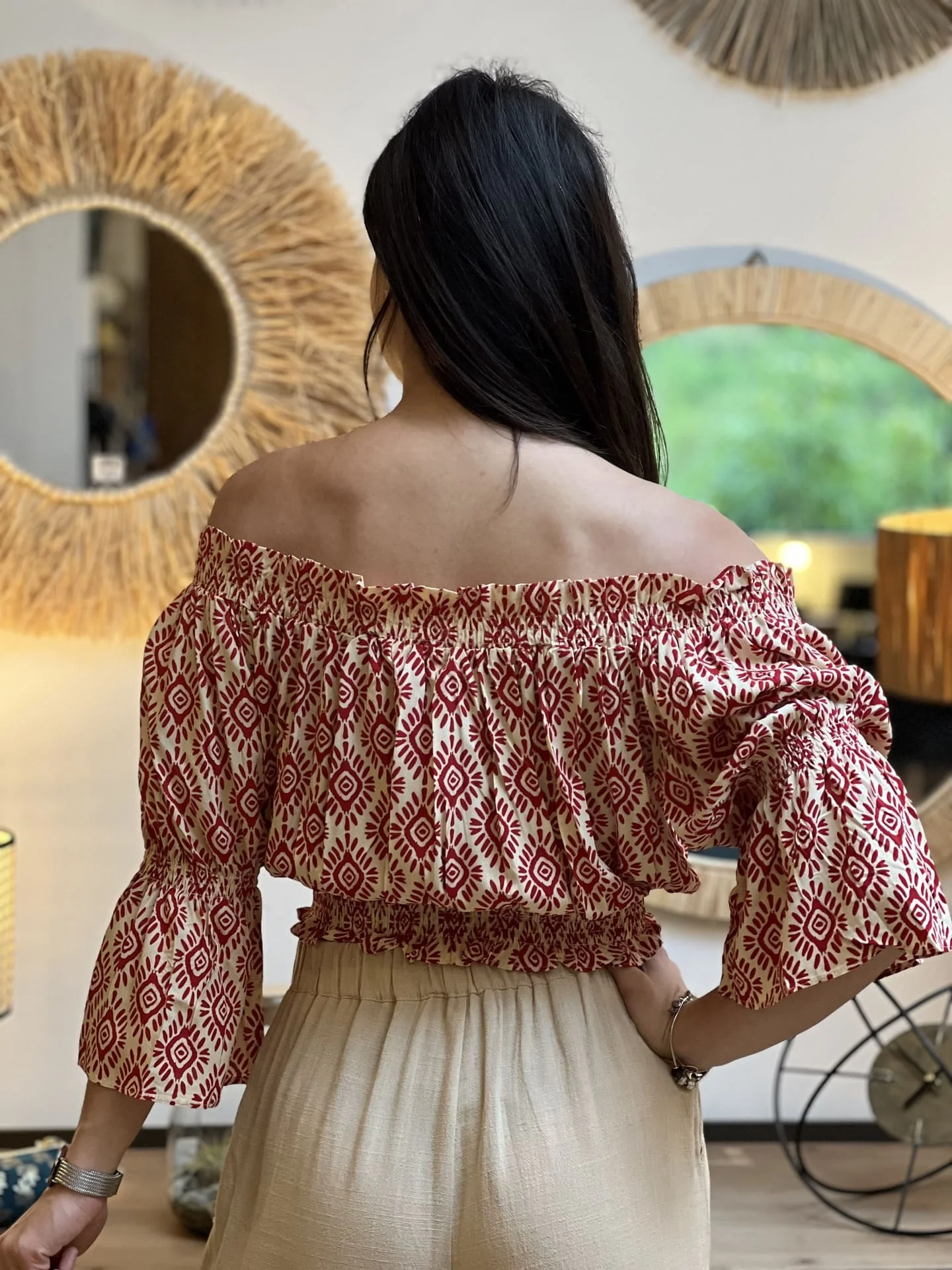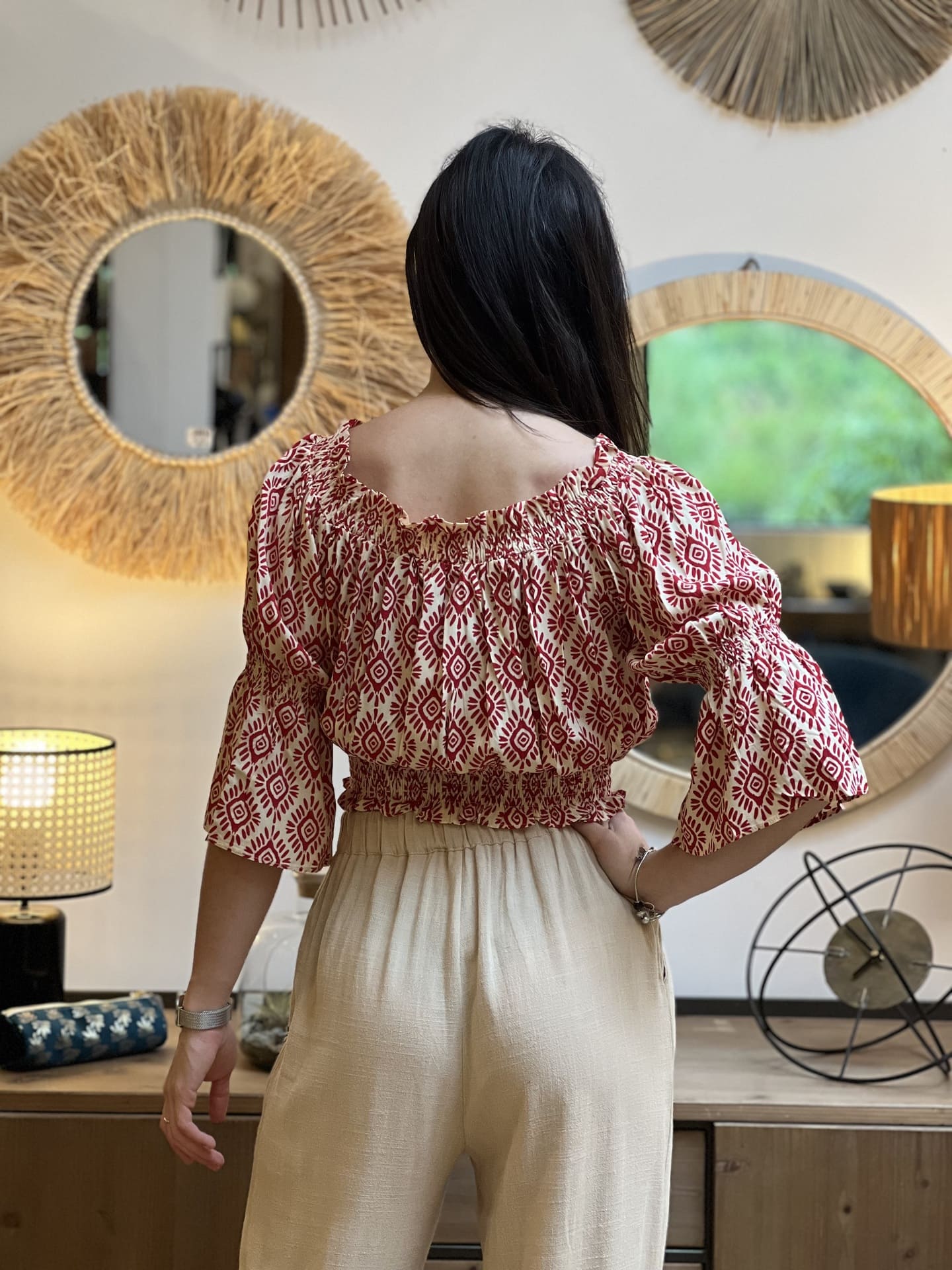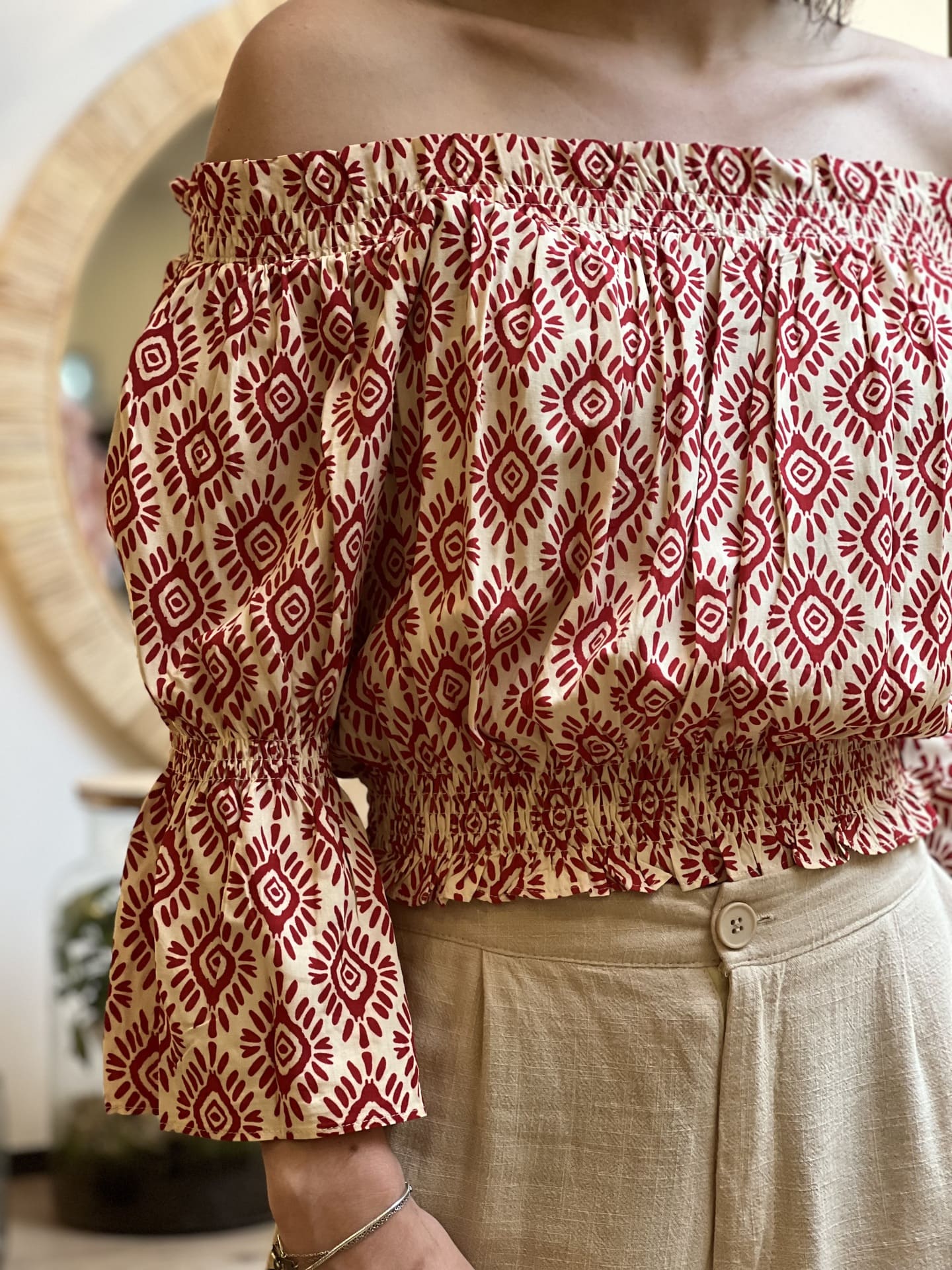 - TOP COURT A ML PORTE EPAULE MOTIF GEOMETRIQUE ETHNIQUE