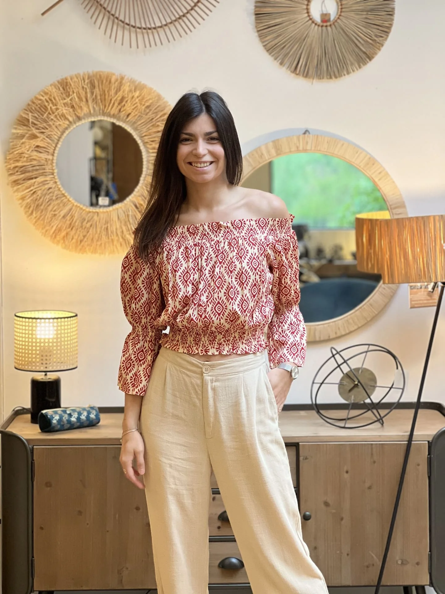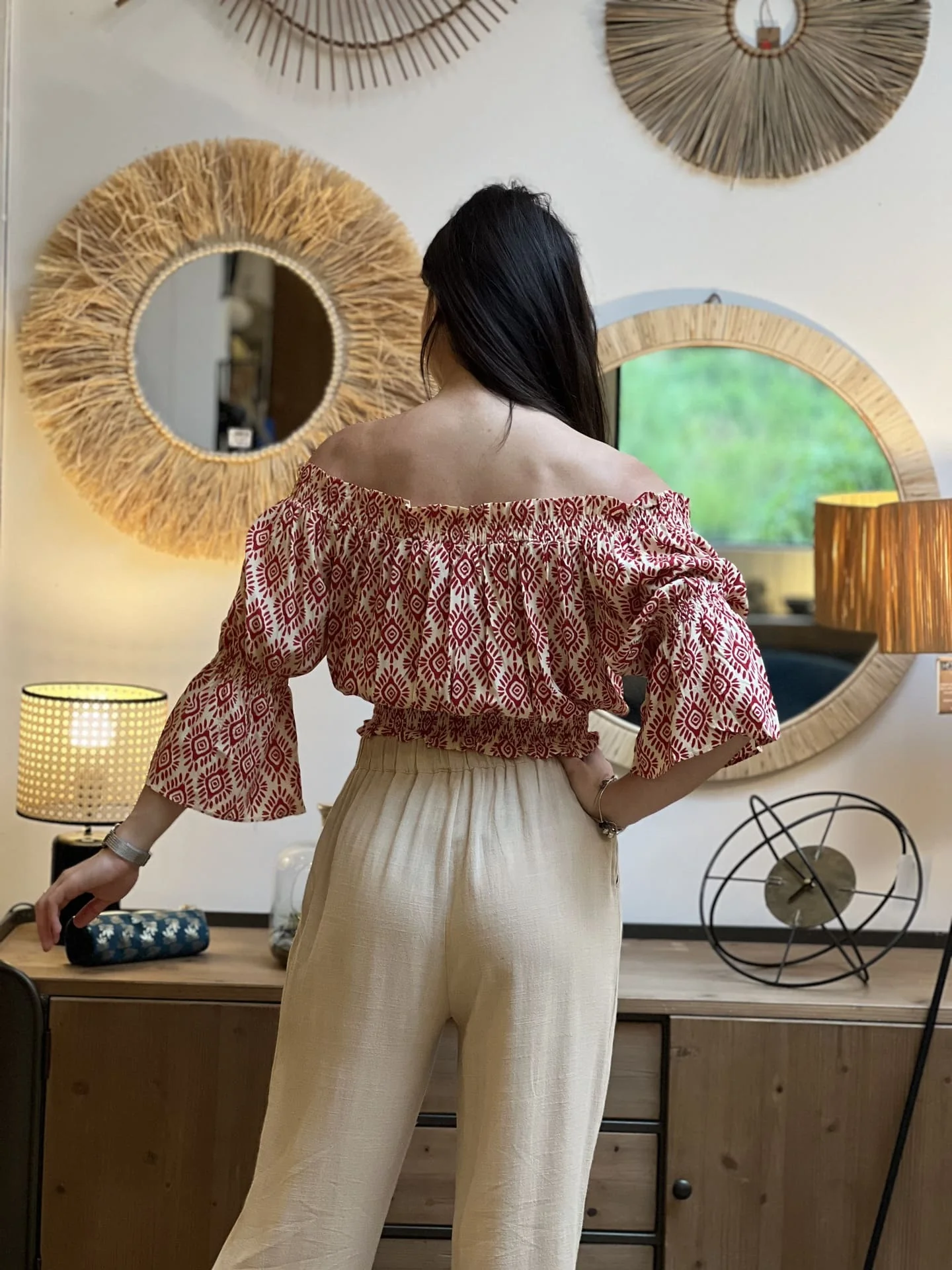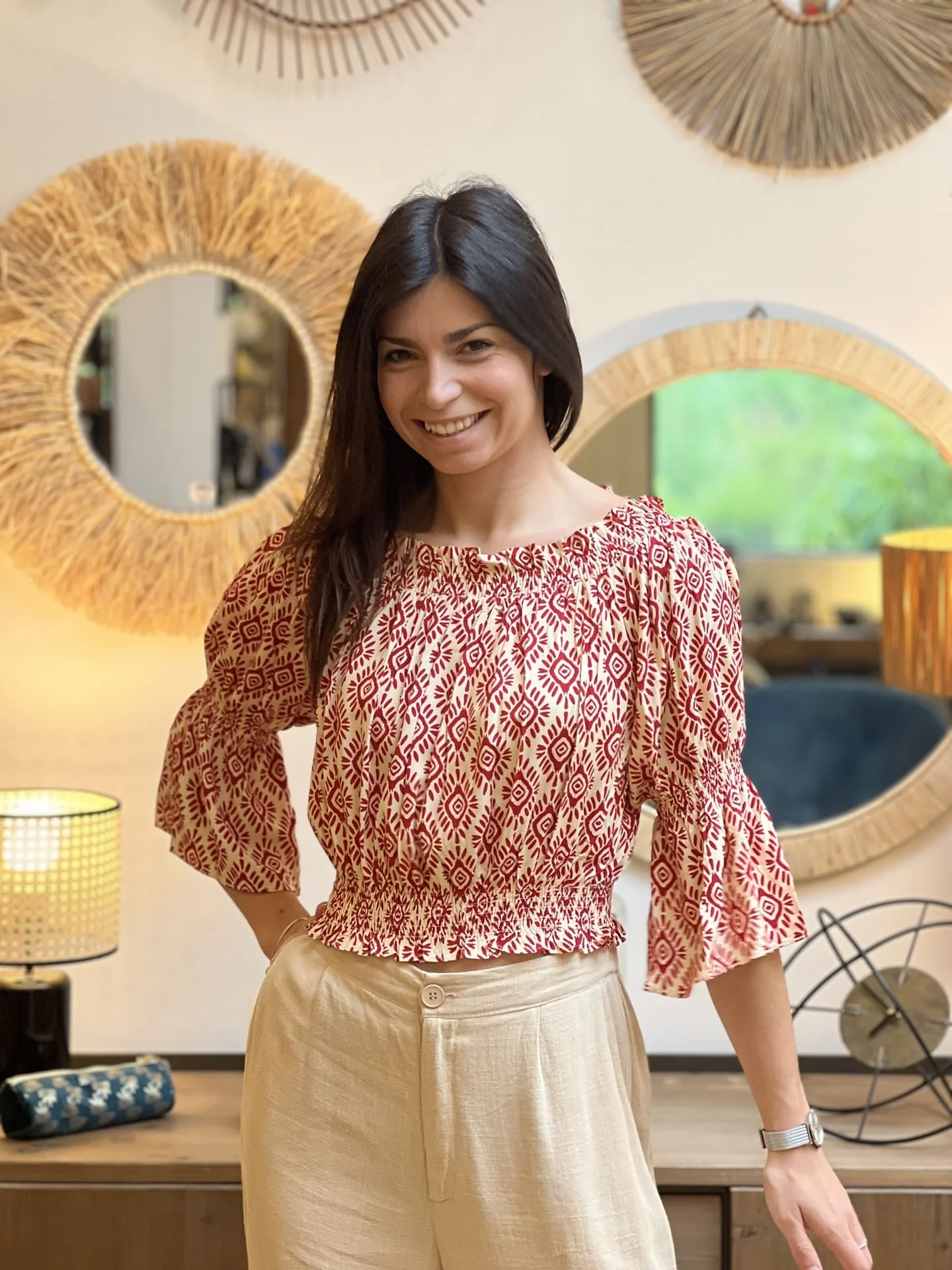 - TOP COURT A ML PORTE EPAULE MOTIF GEOMETRIQUE ETHNIQUE