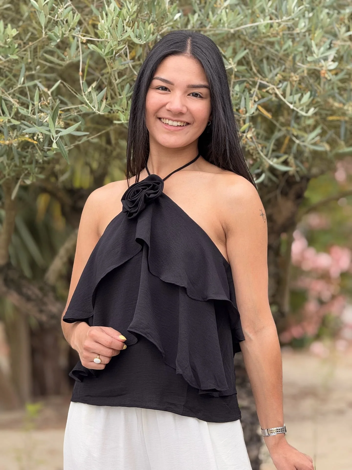 DEBARDEUR/CARACO A VOLANT NOUE AU COU Taille : Mathilde mesure 1m65. Elle porte la taille S/M pour ce modèle. Taille : S/M (36-38) et M/L (38-40) Composition & entretien : 100% POLYESTER Lavage à la main conseillé Besoin d’un conseil ? Consultez notre foire aux questions ou contactez-nous via notre formulaire de contact