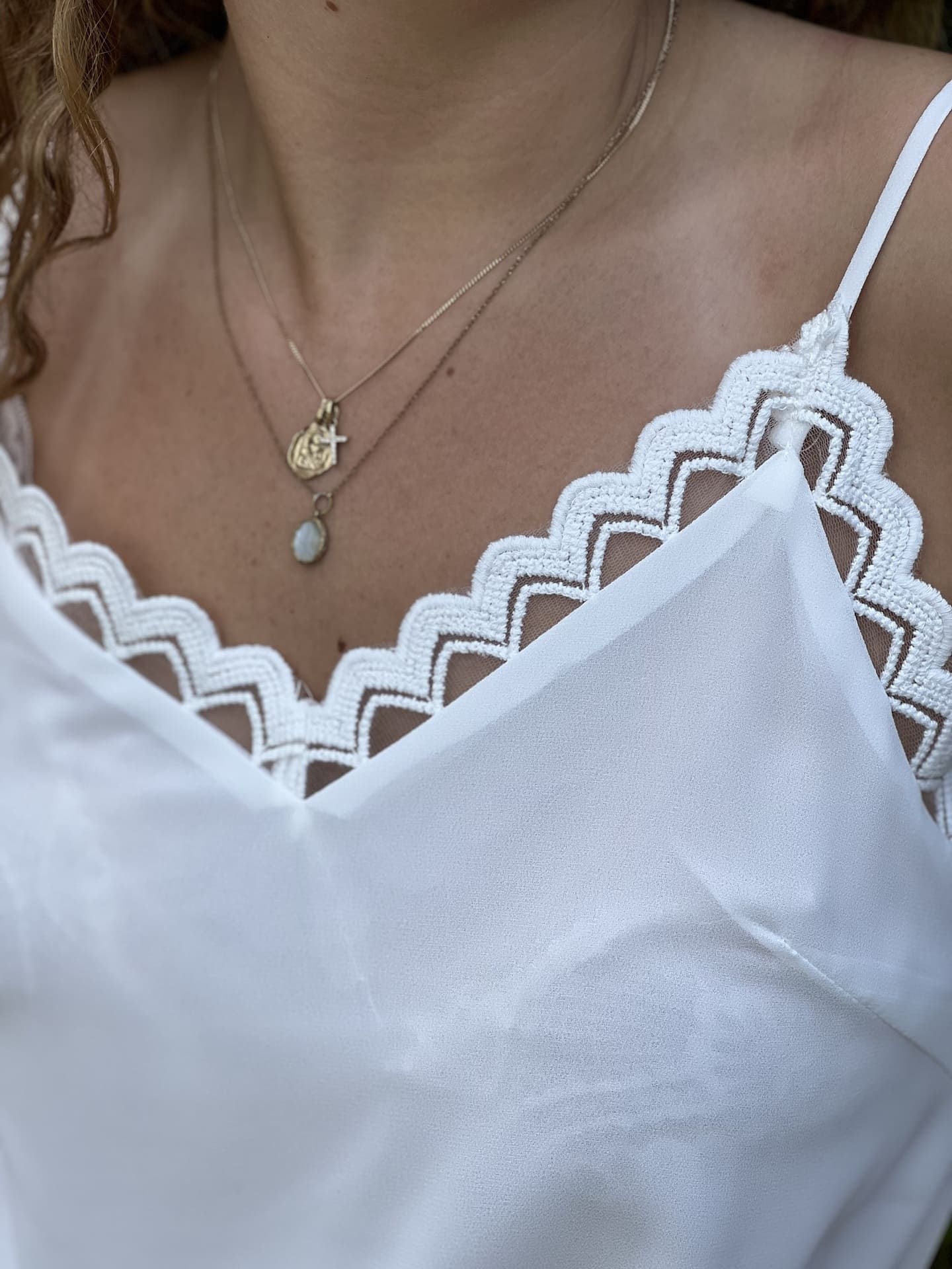 CARACO À FINES BRETELLES liseret doré Jeanne mesure 1m68. Elle porte la taille S pour ce modèle. Taille : S (36) / M (38) / L (40) Composition & entretien : 100% polyester Lavage à la main conseillé Besoin d’un conseil ? Consultez notre foire aux questions ou contactez-nous via notre formulaire de contact