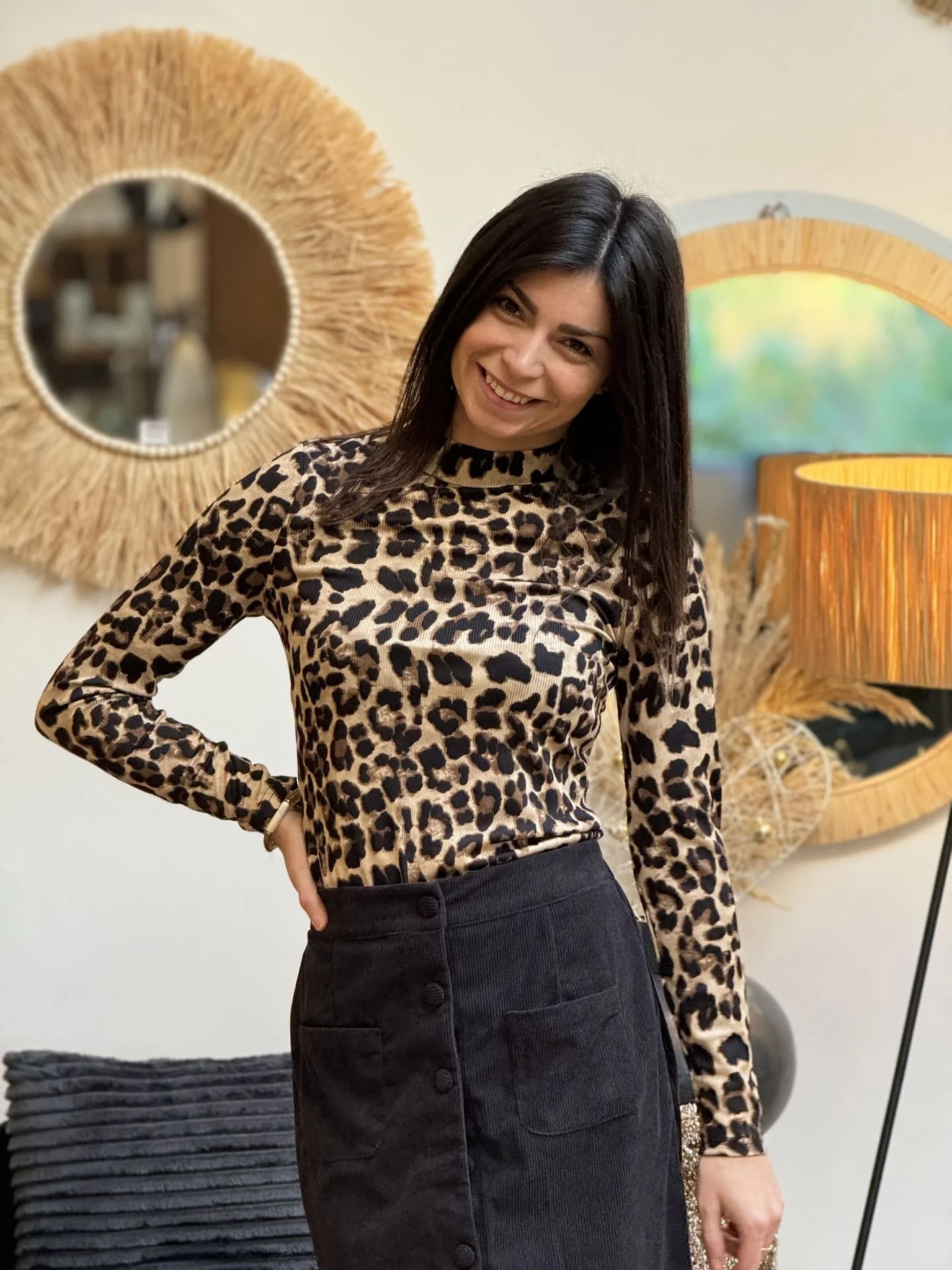 - TOP À ML COL HAUT IMPRIMÉ LÉOPARD