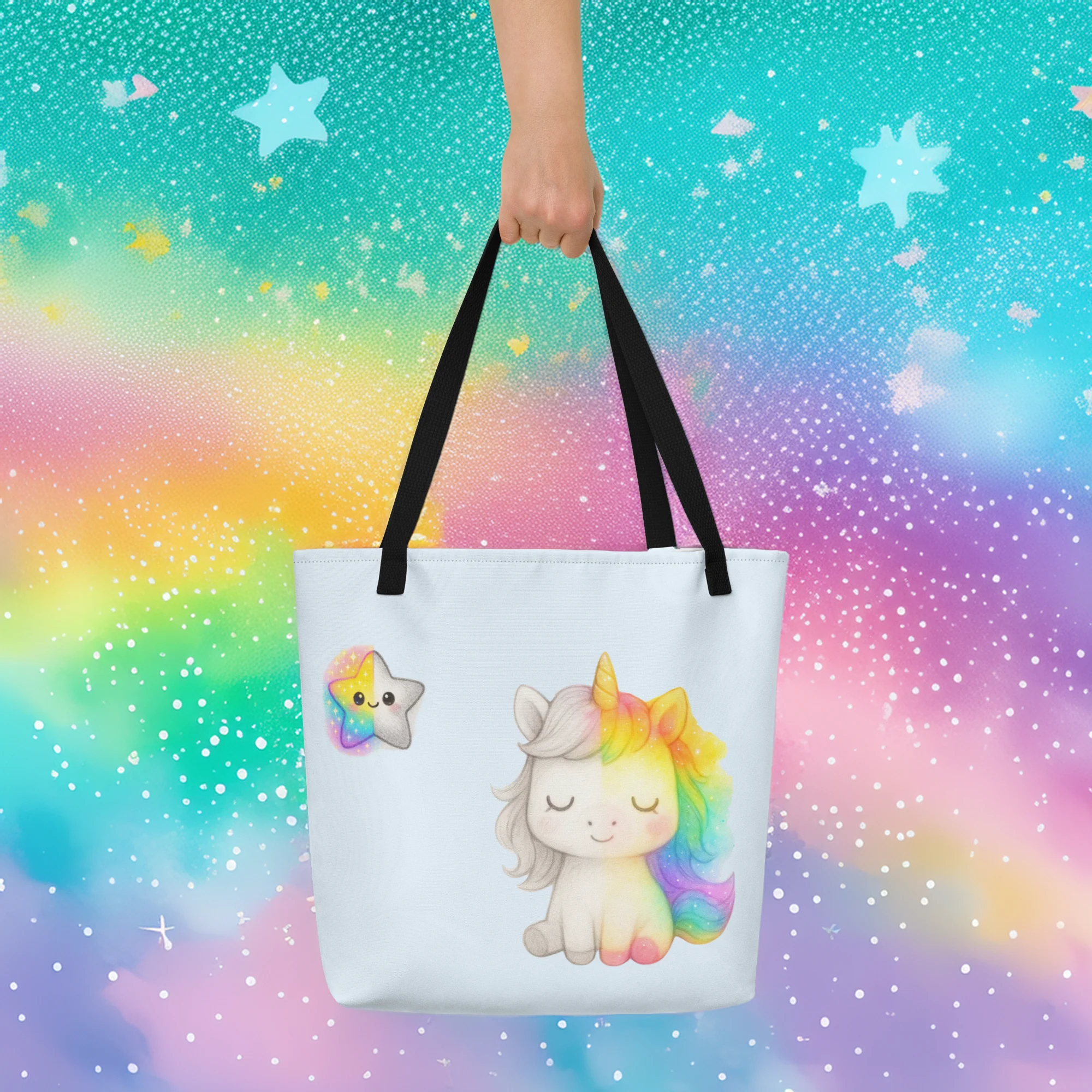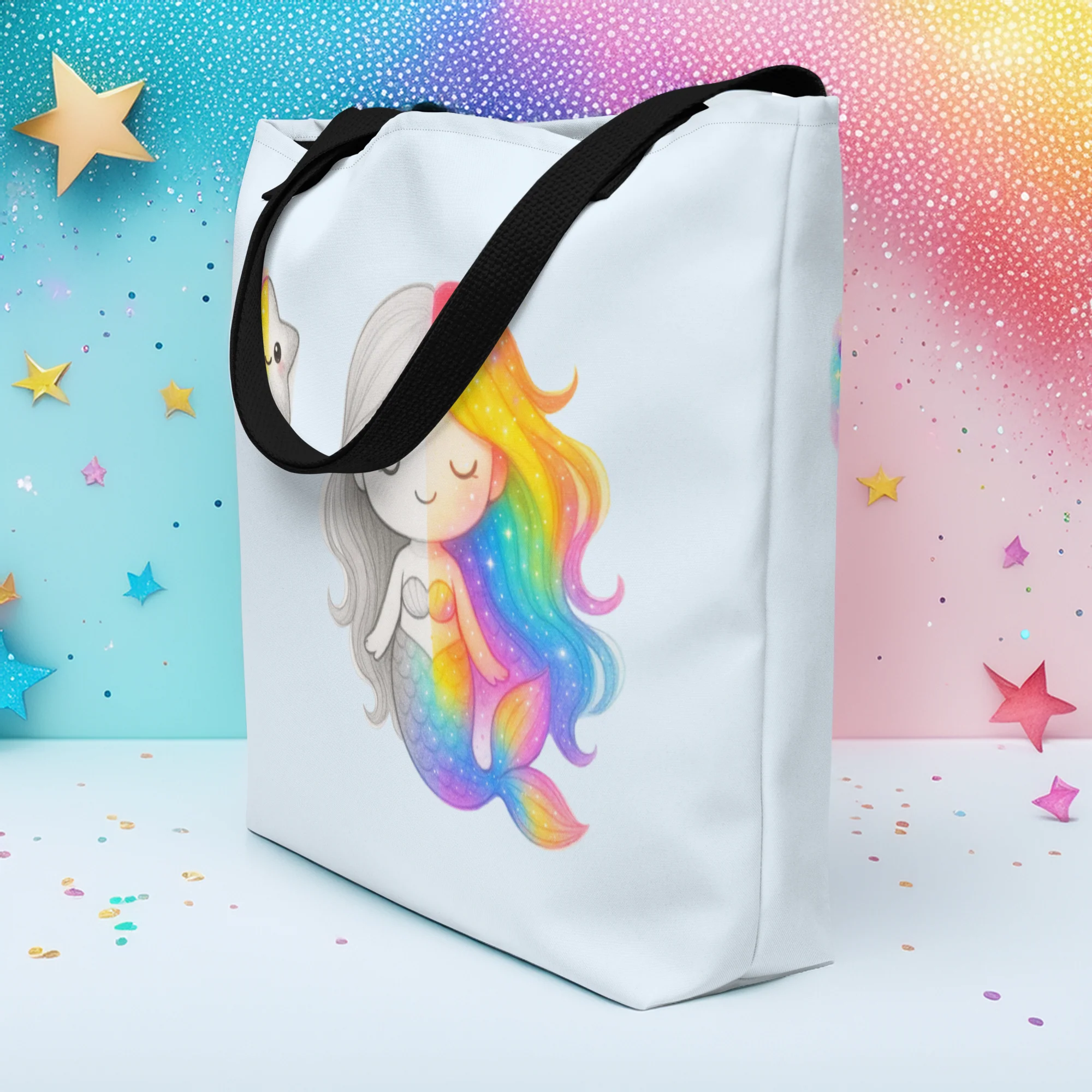 Entre la douceur d’une licorne rêveuse et la liberté d’une sirène arc-en-ciel, le tote “Magic Duo” incarne l’imagination sans limite.