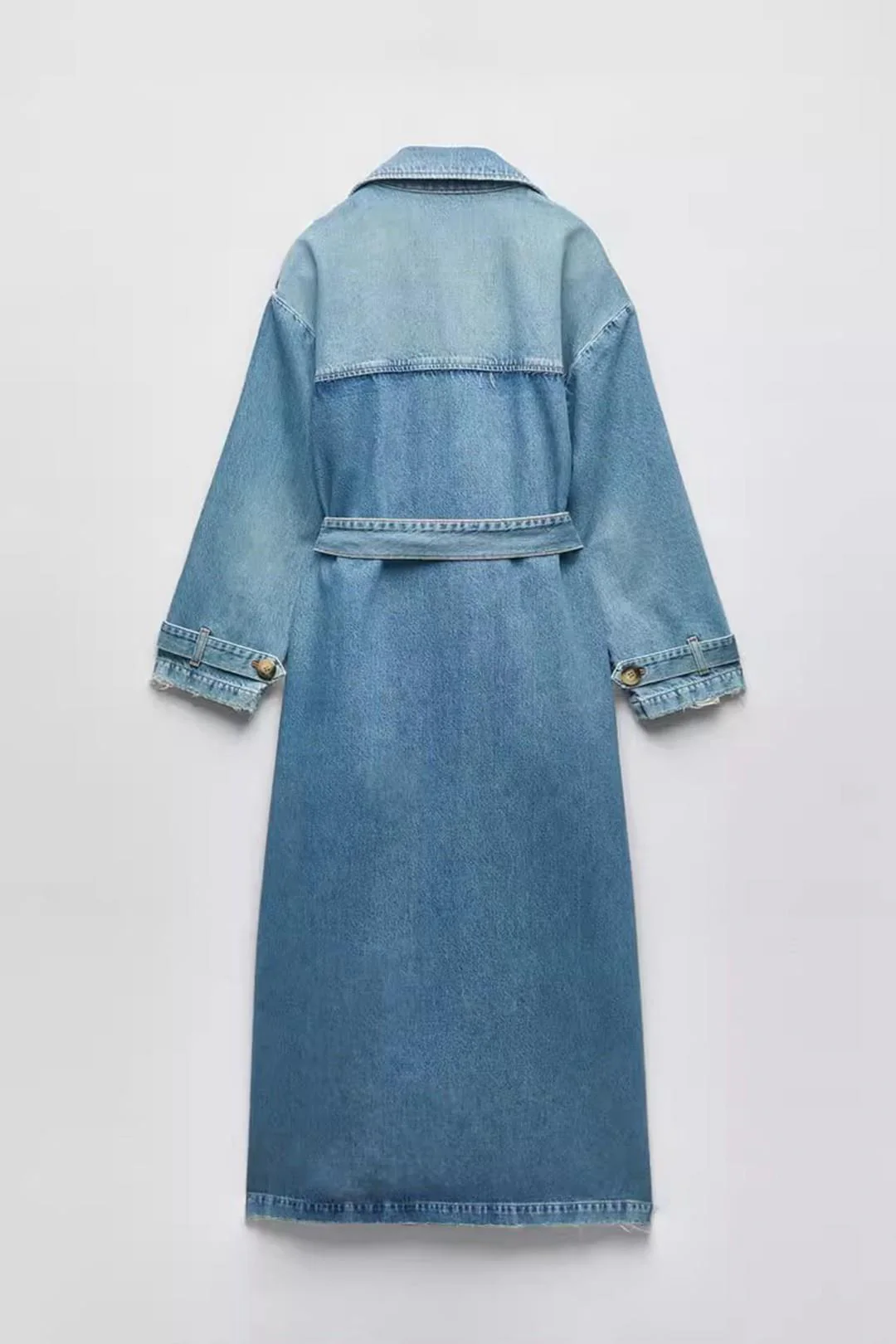 Trench coat denim long Ceinture intégrée Manches longues Double boutonnage