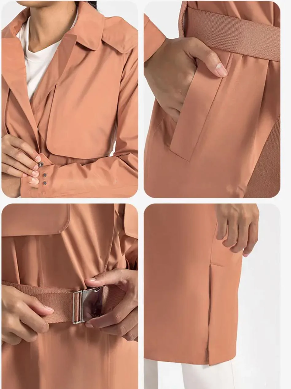 Trench imperméable mi-long Avec poches Ceinture intégrée Poignet boutonnée ajustable À capuche