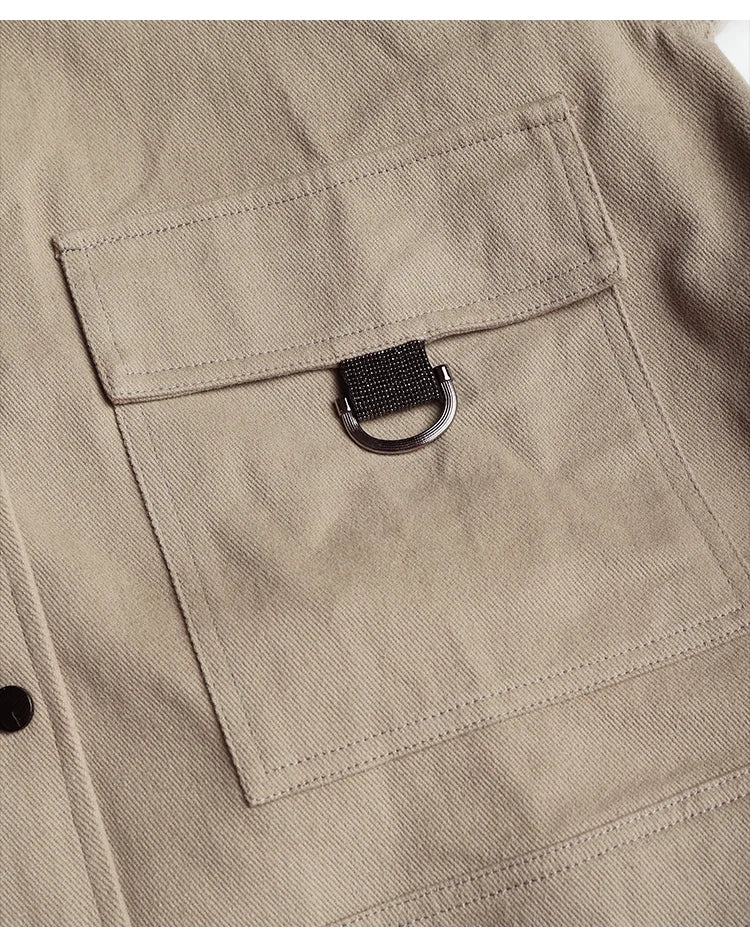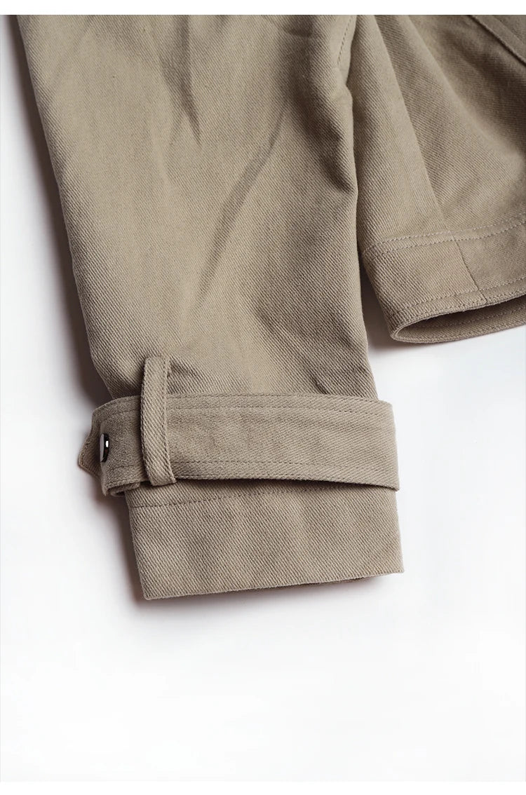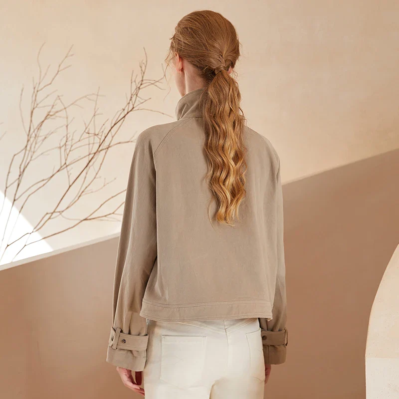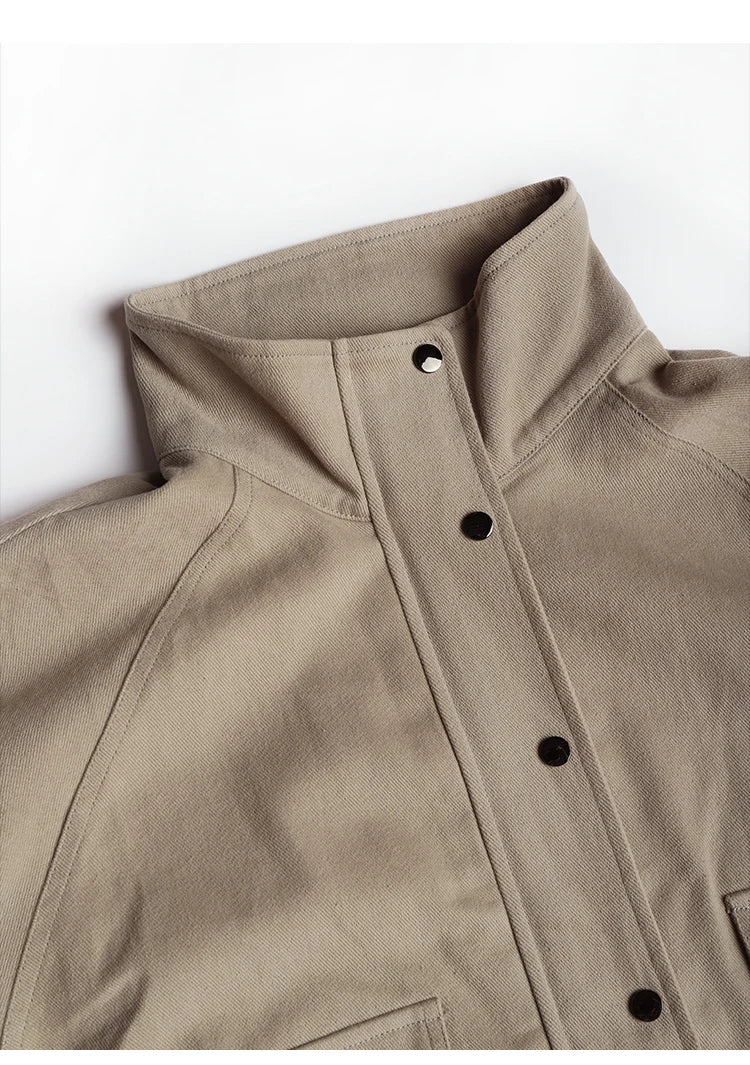 Veste courte 100% coton Haute qualité Col haut Boutonnée Poches avec rabats Manches longues
