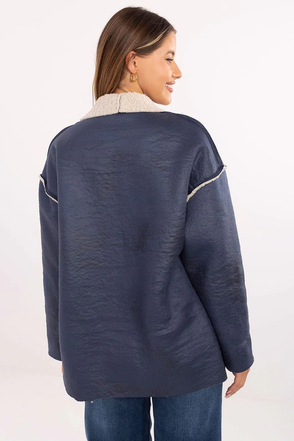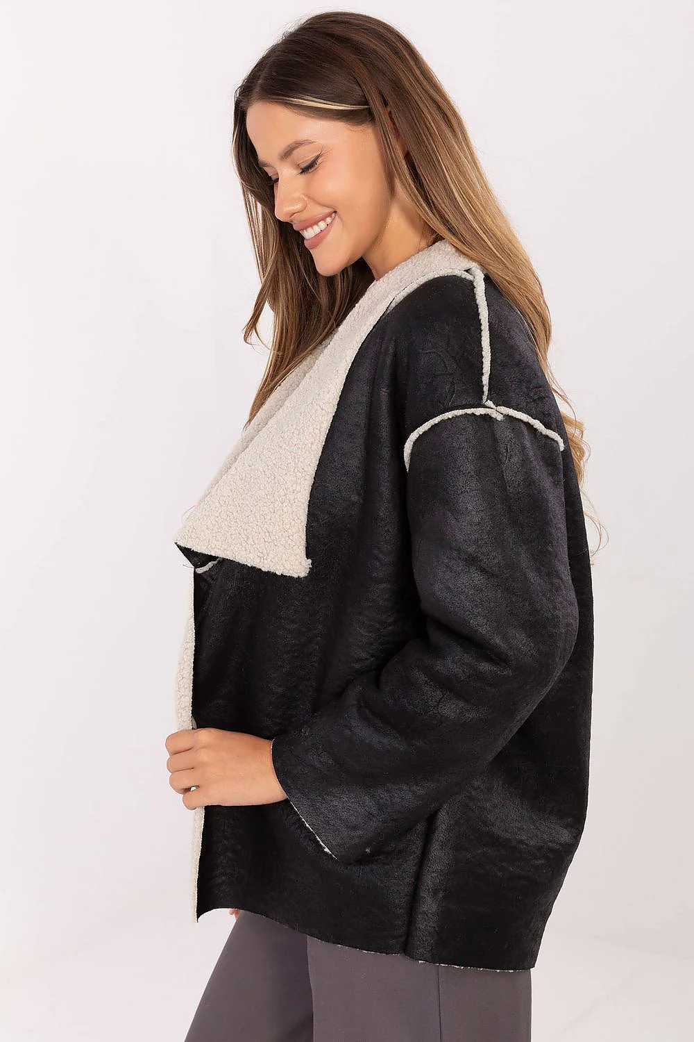 Veste oversize Coupe ample Manches longues Doublure en fausse fourrure Aspect suédine effet cuir velours Finition contrastée Fabrication Européenne